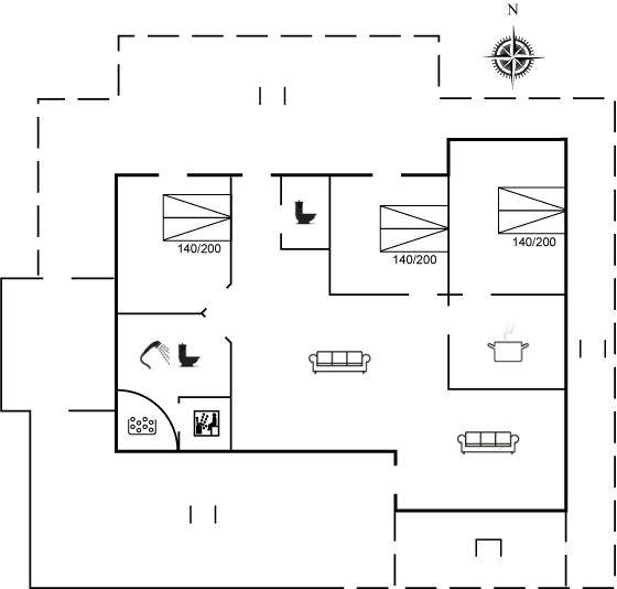 SchlafverhältnisseDie Schlafplätze verteilen sich auf 3 Schlafräume. 6 Schlafplätze in Doppelbetten. 2 Schlafplätze auf Matratzen. 2 von diesen Schlafplätzen befinden sich im offenen Obergeschoss. Ferner steht ein Kinderbett zur Verfügung.