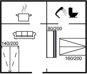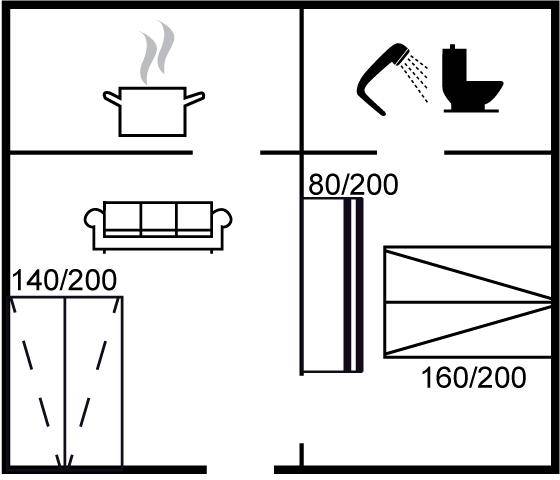 34 m² Ferienwohnung ∙ 1 Schlafzimmer ∙ 6 Gäste