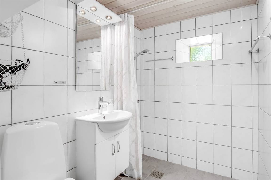 Es gibt 1 Badezimmer mit Fußbodenheizung, 1 Dusche und 1 Toilette.