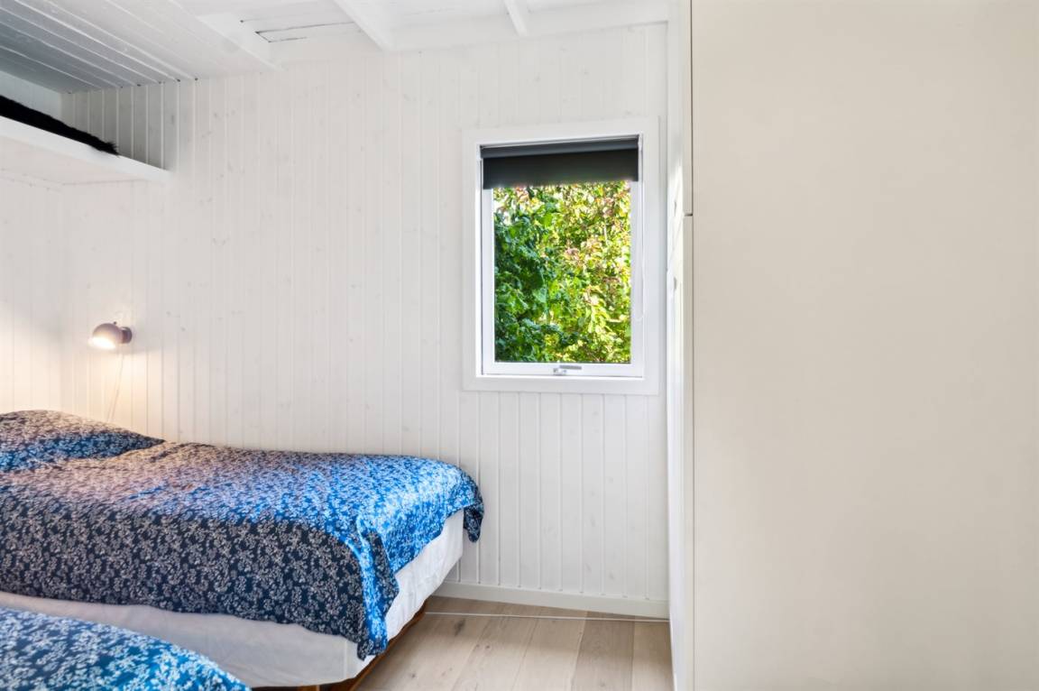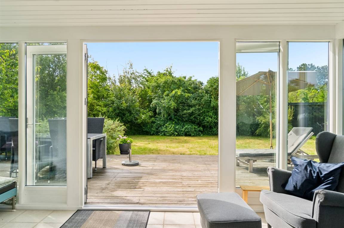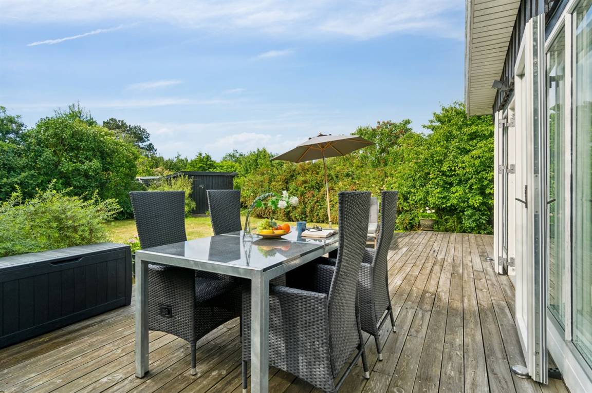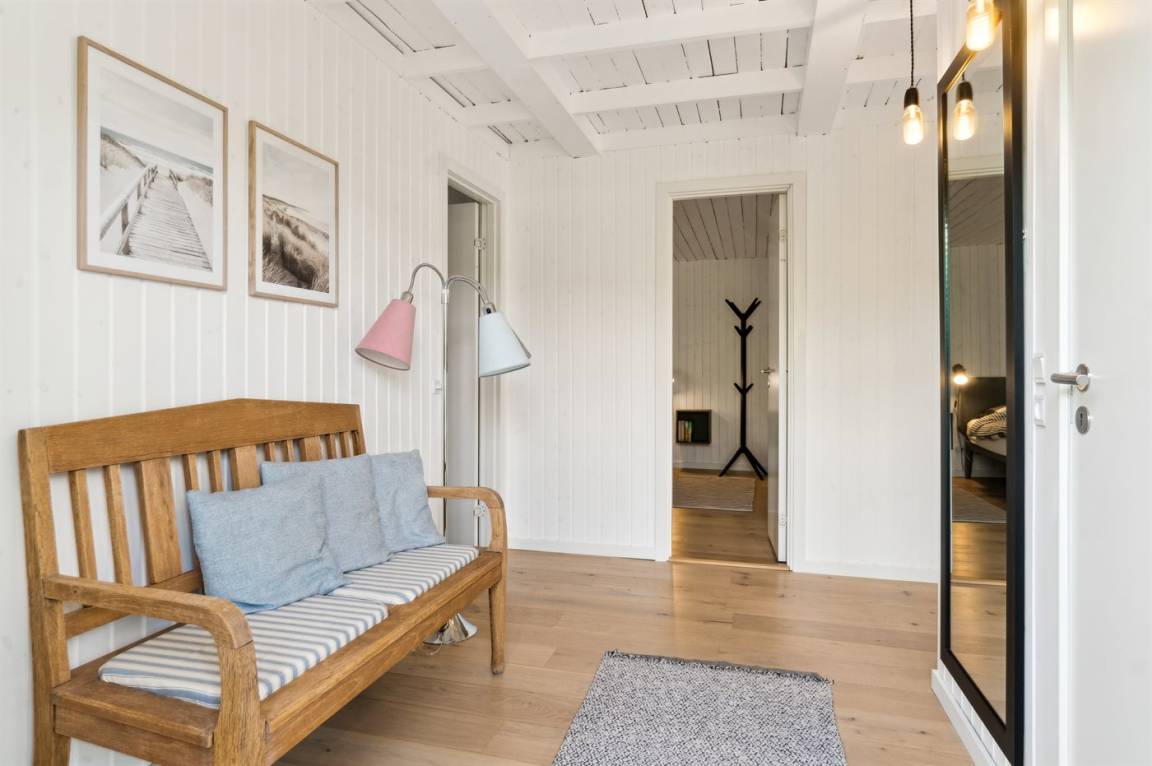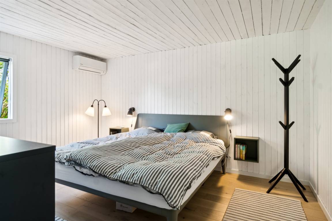 Dieses sommerlich eingerichtete und komplett renovierte Ferienhaus liegt in einer ruhigen Gegend, nur 250 Meter von einem guten und kinderfreundlichen Badestrand entfernt. Das Haus wurde 2022 renoviert und mit viel Lichteinfall ist es überall hell und angenehm zu verweilen. Die moderne Küche ist offen mit dem Fernsehzimmer und dem Essbereich verbunden, von wo aus man in ein fantastisches Wohnzimmer mit dem schönsten Licht gelangt, wo man sich eins mit den Bäumen, Büschen und der Natur draußen fühlt. Von hier aus hat man Zugang zu einer großen, südlich ausgerichteten Holzterrasse und zum Garten, wo die Kinder spielen können.
