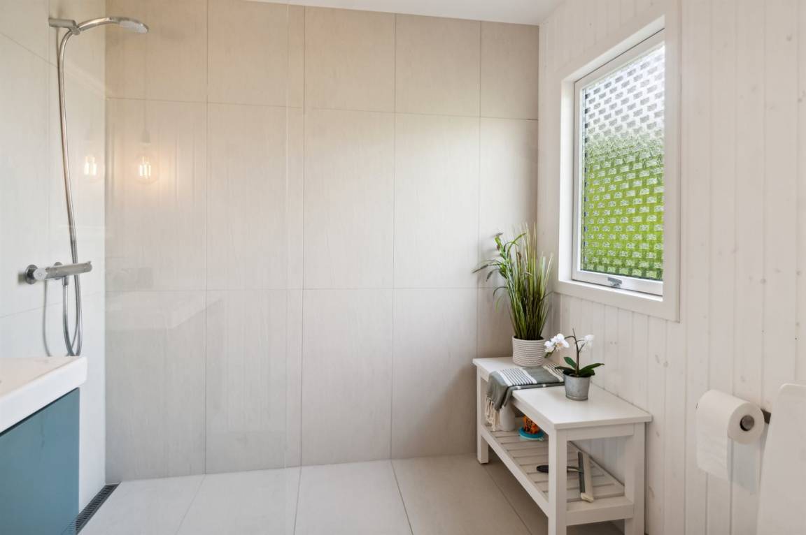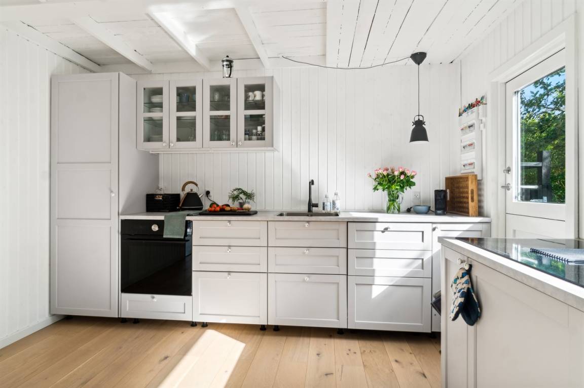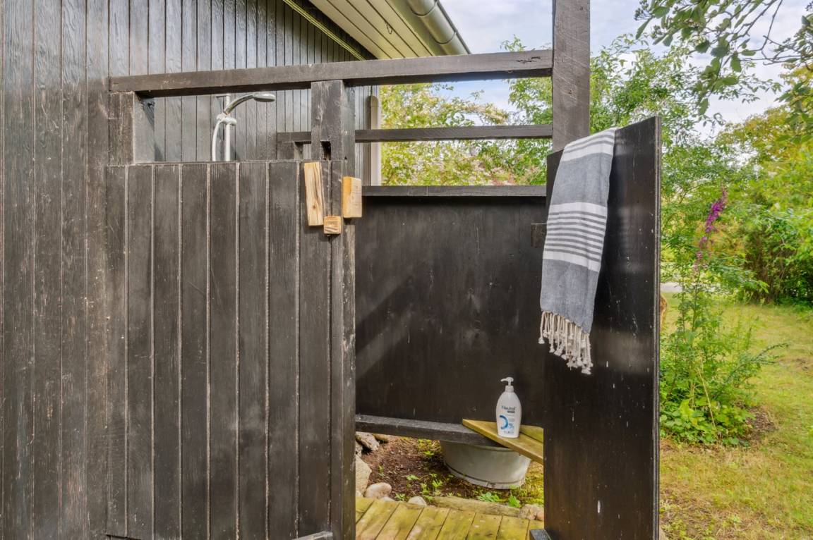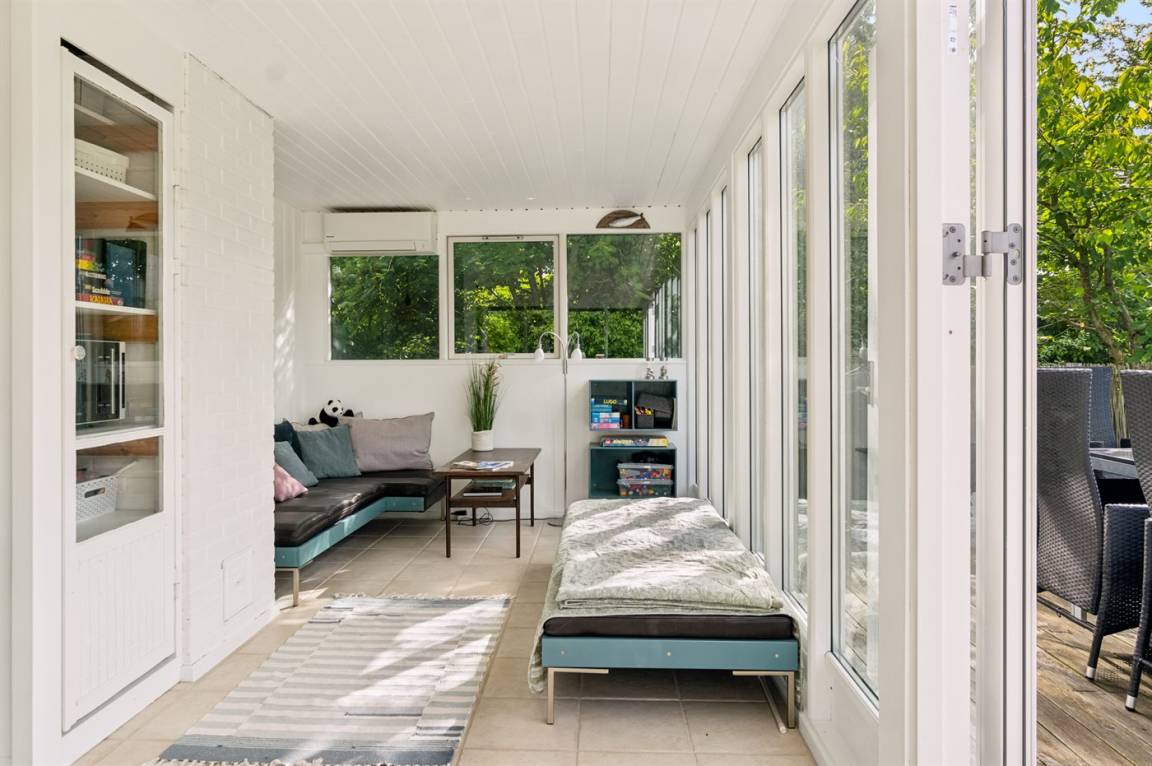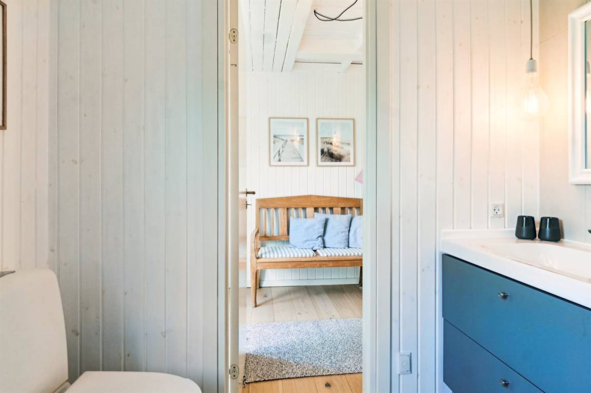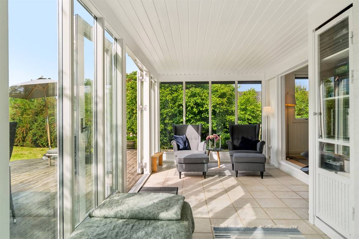 Dieses sommerlich eingerichtete und komplett renovierte Ferienhaus liegt in einer ruhigen Gegend, nur 250 Meter von einem guten und kinderfreundlichen Badestrand entfernt. Das Haus wurde 2022 renoviert und mit viel Lichteinfall ist es überall hell und angenehm zu verweilen. Die moderne Küche ist offen mit dem Fernsehzimmer und dem Essbereich verbunden, von wo aus man in ein fantastisches Wohnzimmer mit dem schönsten Licht gelangt, wo man sich eins mit den Bäumen, Büschen und der Natur draußen fühlt. Von hier aus hat man Zugang zu einer großen, südlich ausgerichteten Holzterrasse und zum Garten, wo die Kinder spielen können.