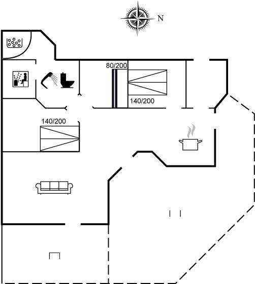 SchlafverhältnisseDie Schlafplätze verteilen sich auf 3 Schlafräume. 4 Schlafplätze in Doppelbetten. 2 Schlafplätze in einem Etagenbett. Ferner steht ein Kinderbett zur Verfügung.