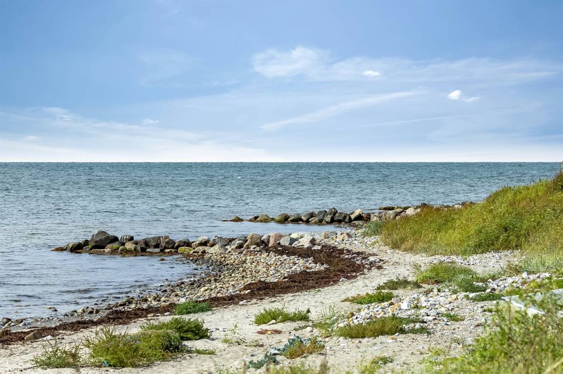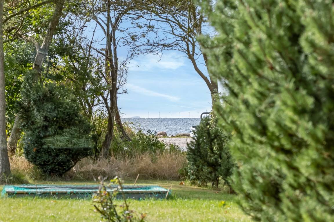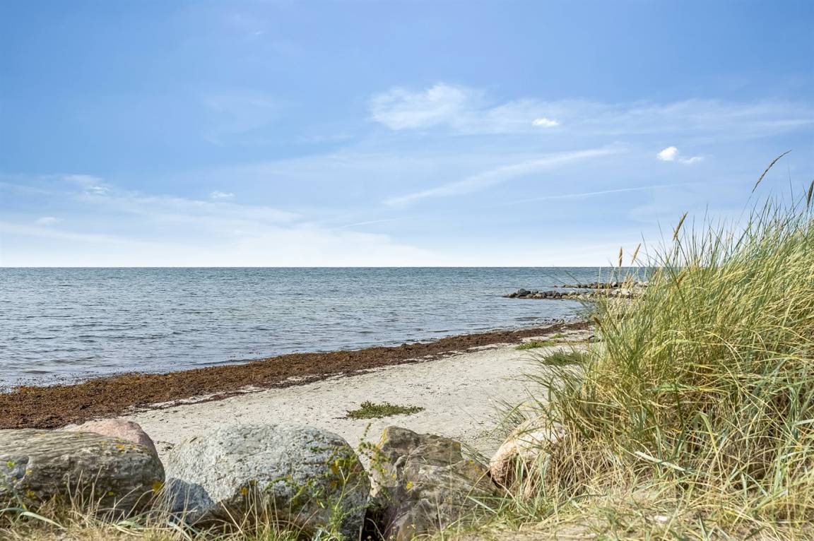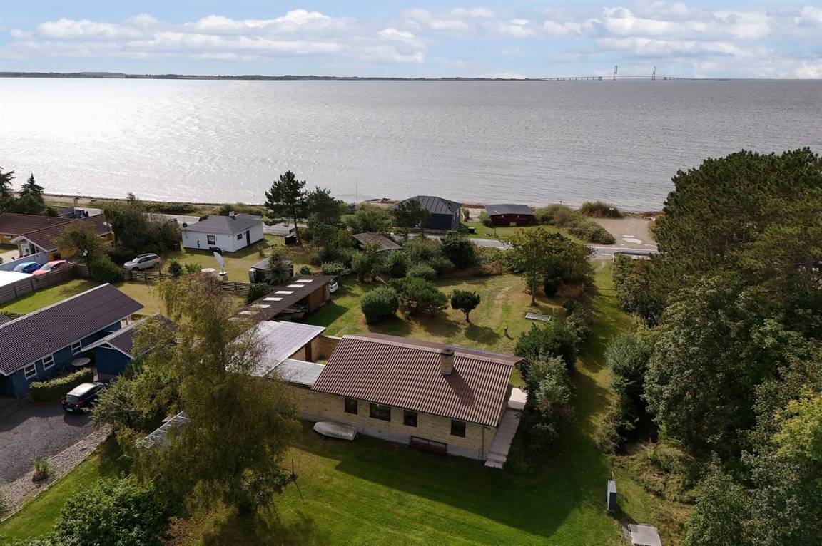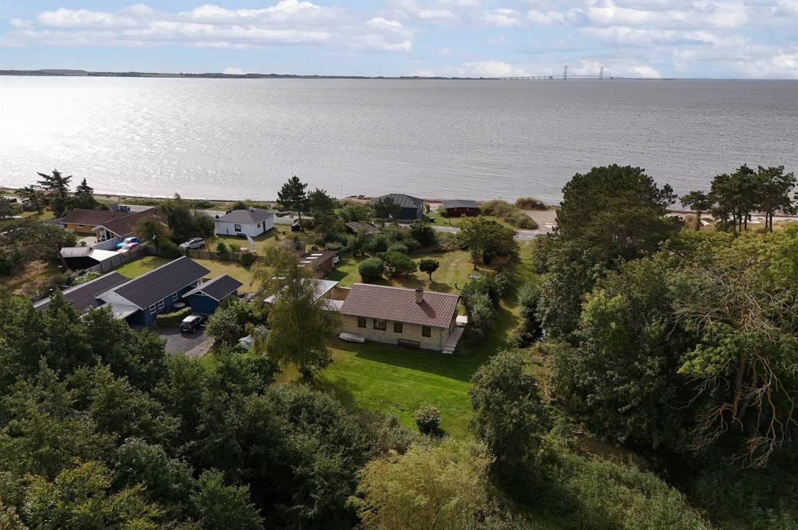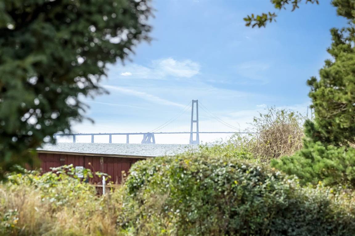 Dieses gemütliche Ferienhaus liegt in unmittelbarer Nähe zum Strand und bietet einen großartigen Blick auf das Meer und die Brücke über den Großen Belt. Das Haus liegt auf einem 4.599 m² großen Grundstück, von dem ein großer Teil aus Naturgebiet mit Rasen und einem Bachlauf besteht.