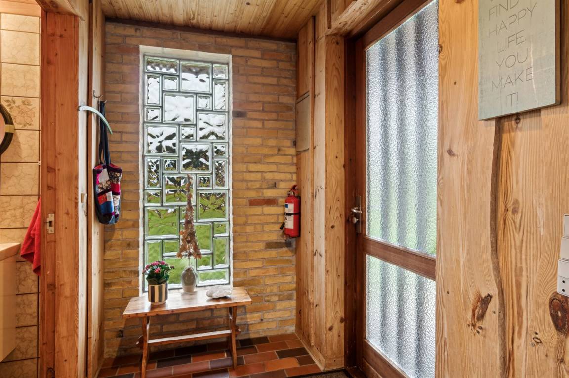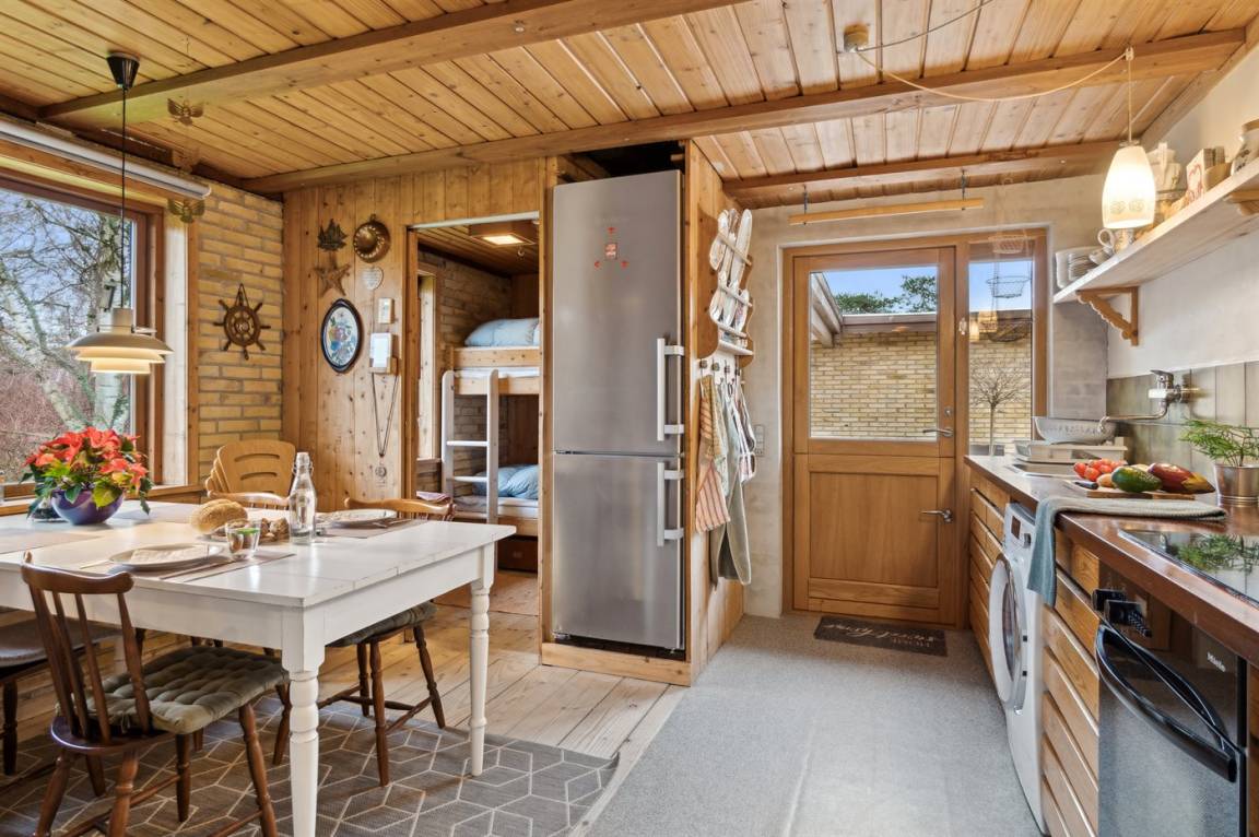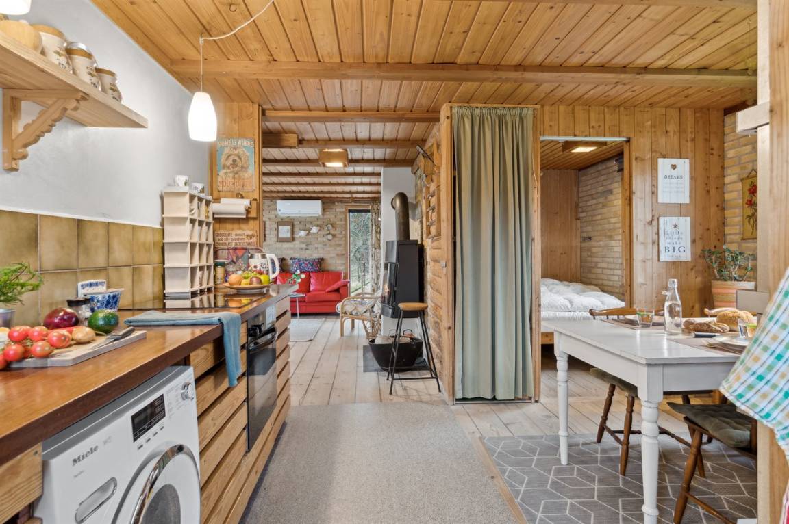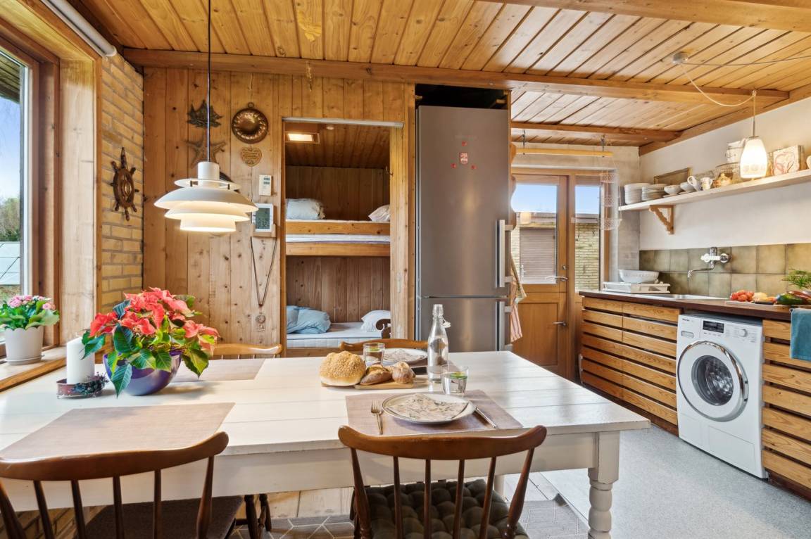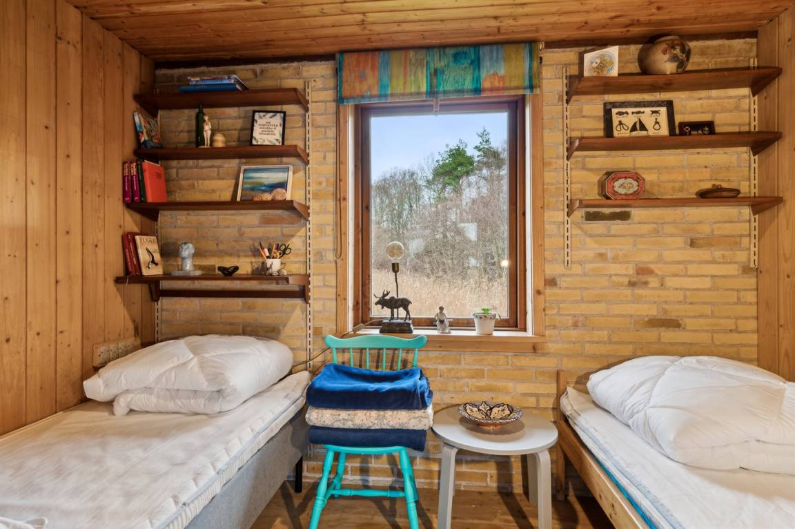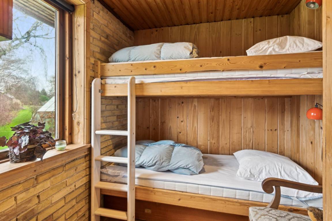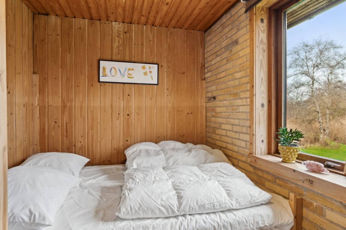 Dieses gemütliche Ferienhaus liegt in unmittelbarer Nähe zum Strand und bietet einen großartigen Blick auf das Meer und die Brücke über den Großen Belt. Das Haus liegt auf einem 4.599 m² großen Grundstück, von dem ein großer Teil aus Naturgebiet mit Rasen und einem Bachlauf besteht.