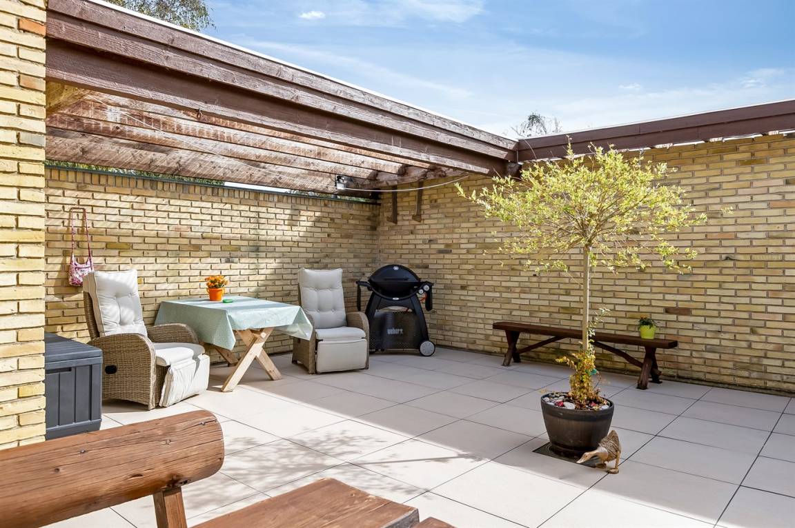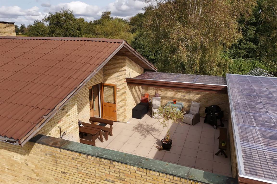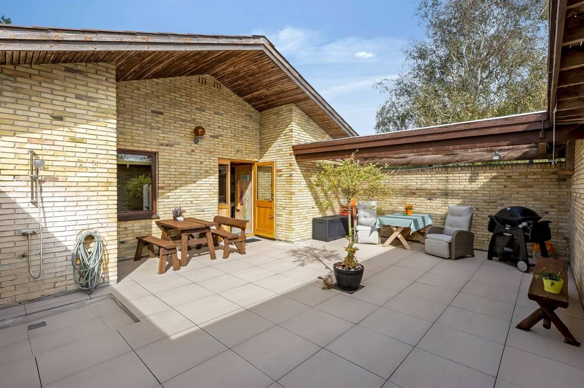 Auf der Westseite des Hauses gibt es eine überdachte Terrasse, auf der du die Aussicht und die wunderschönen Sonnenuntergänge genießen kannst. Zudem gibt es einen geschlossenen Atriumgarten mit Außendusche und überdachten Bereichen, die es dir ermöglichen, die Sonne ungestört zu genießen und an windigen Tagen Schutz zu finden.