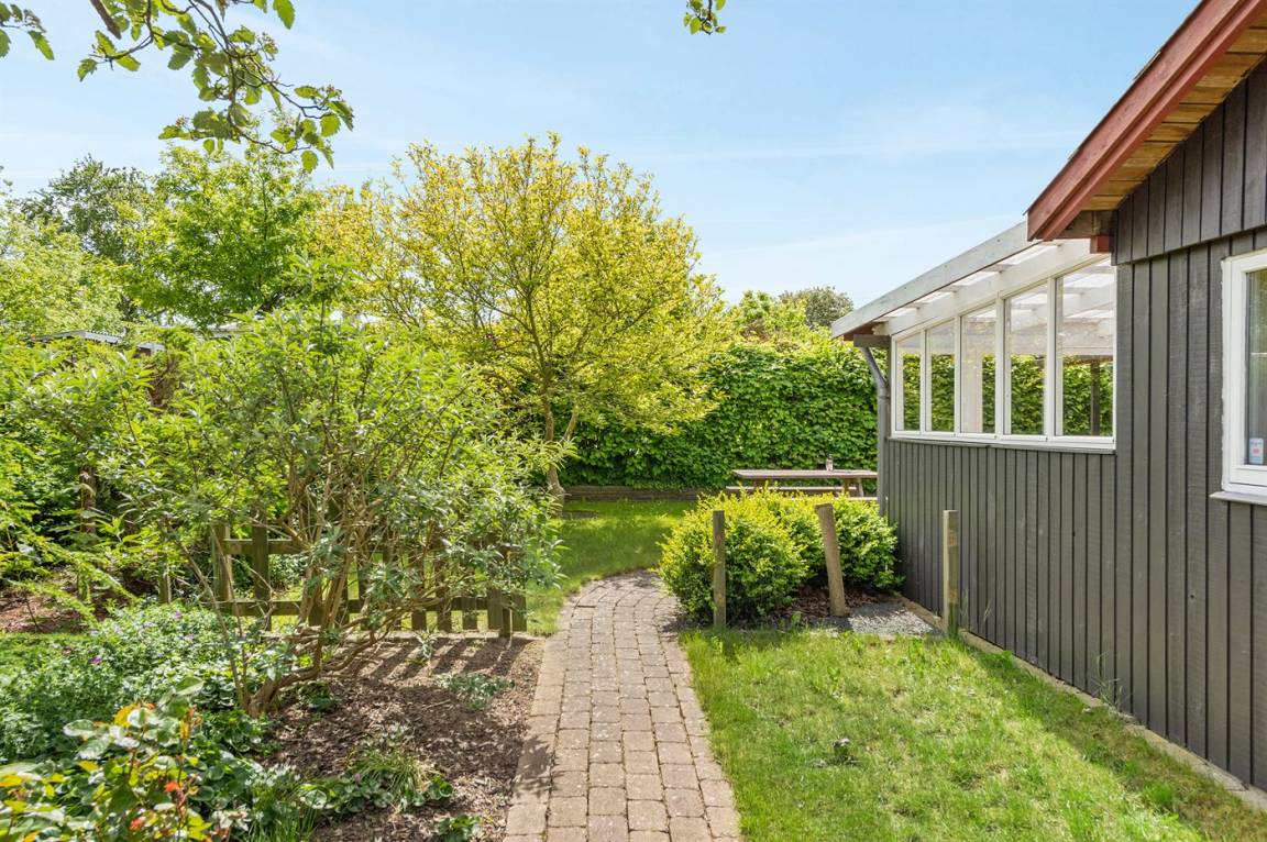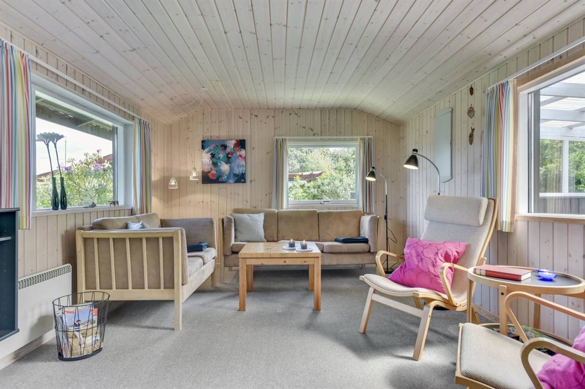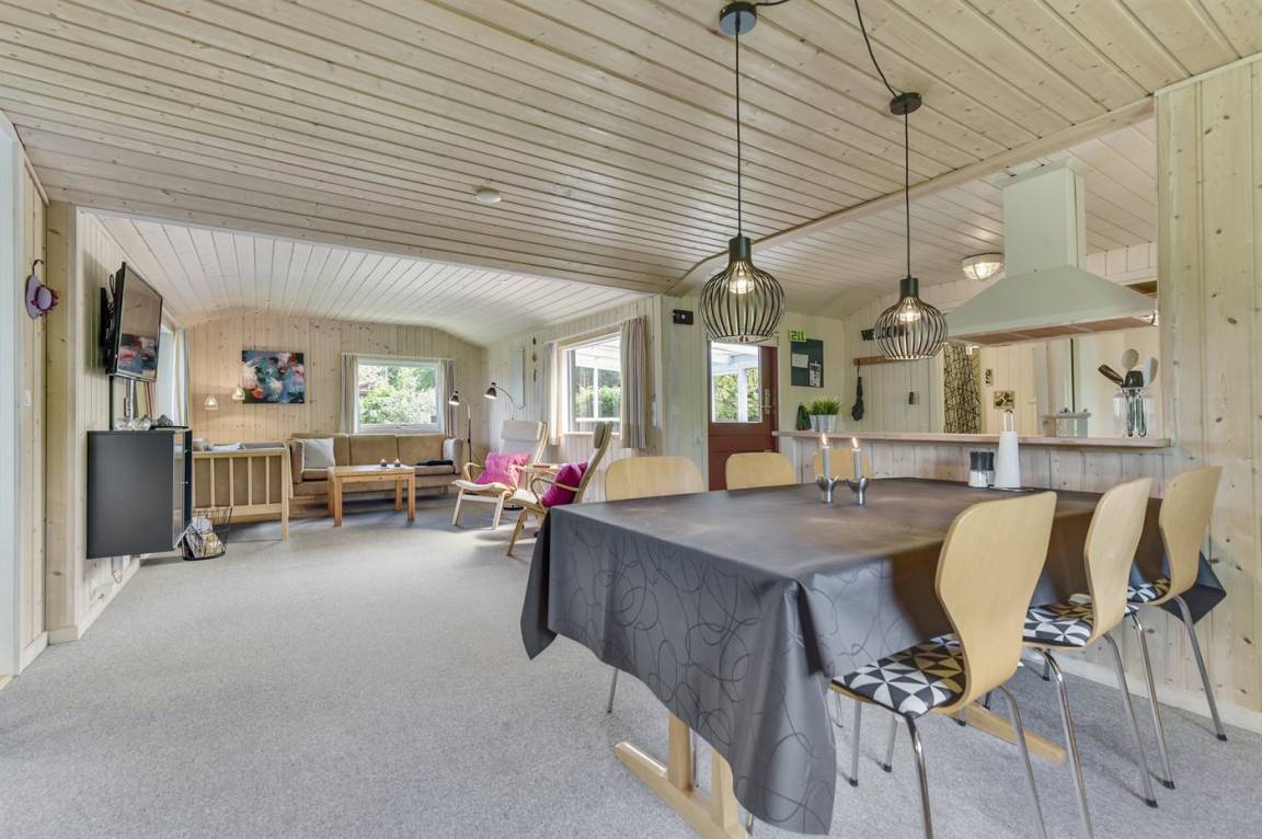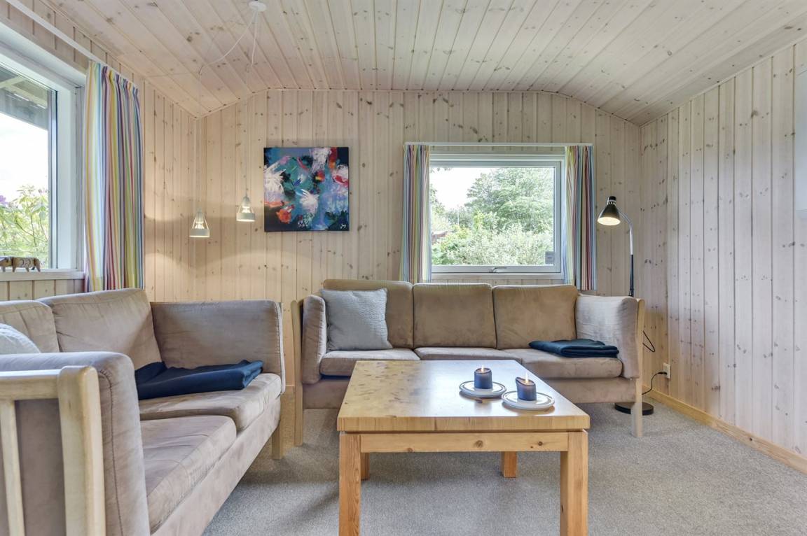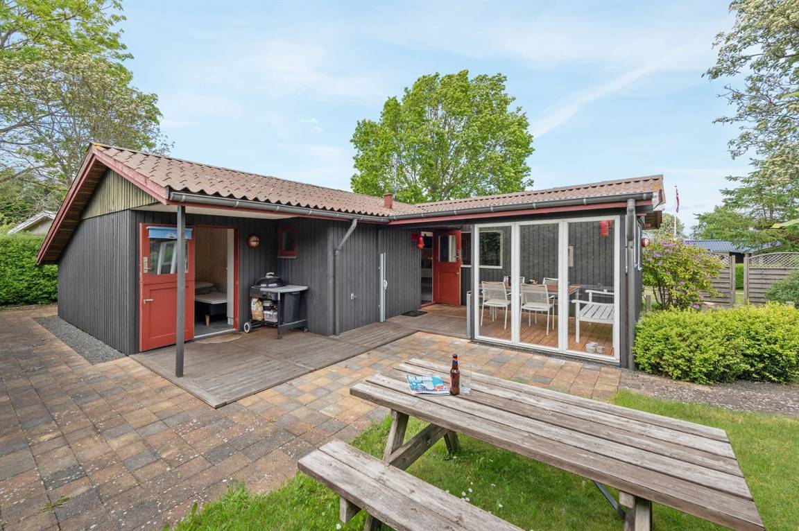 Dieses nette Ferienhaus aus Holz, 1999 renoviert, liegt auf einem teilweise abgeschirmten Gartengrundstück - nur ca. 50 m von einem Spielplatz entfernt. Zum Haus gehören eine offene sowie eine schöne, überdachte Terrasse mit Gartenmöbeln. Die helle Küche liegt im Anschluss an das Wohn-/Esszimmer und ist u. a. mit Geschirrspüler, Mikrowelle, kleines Tiefkühlgerät, Umluftofen und Herd mit Ceran-Feld ausgestattet. Im Wohn-/Esszimmer finden Sie TV mit digitalem Satellitenanschluss, DVD-Spieler und Stereoanlage mit CD-Spieler. Die Schlafplätze verteilen sich auf 1 Zimmer mit Doppelbett, 1 Zimmer mit Etagenbett sowie 2 Schlafplätze (Einzelbetten) im Gästehaus. Für die jüngsten Feriengäste stehen Kinderbett und Kinderhochstuhl zur Verfügung. Es ist eine energiegerechte Wärmepumpe installiert. Ein nettes Ferienhaus in einem kinderfreundlichen Gebiet mit gutem Badestrand.