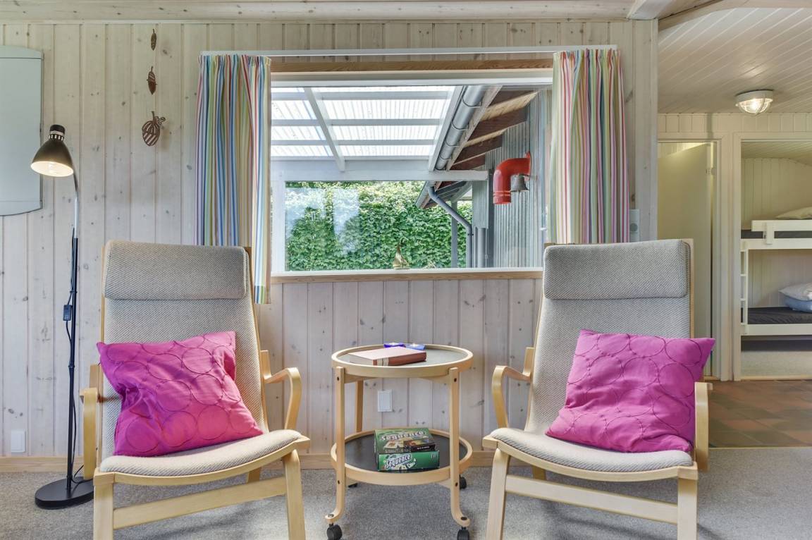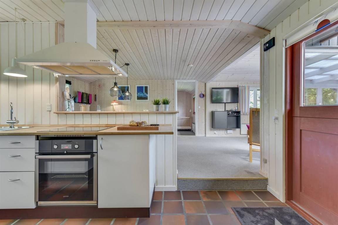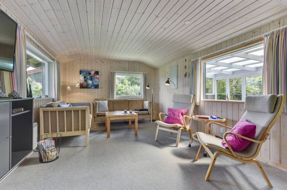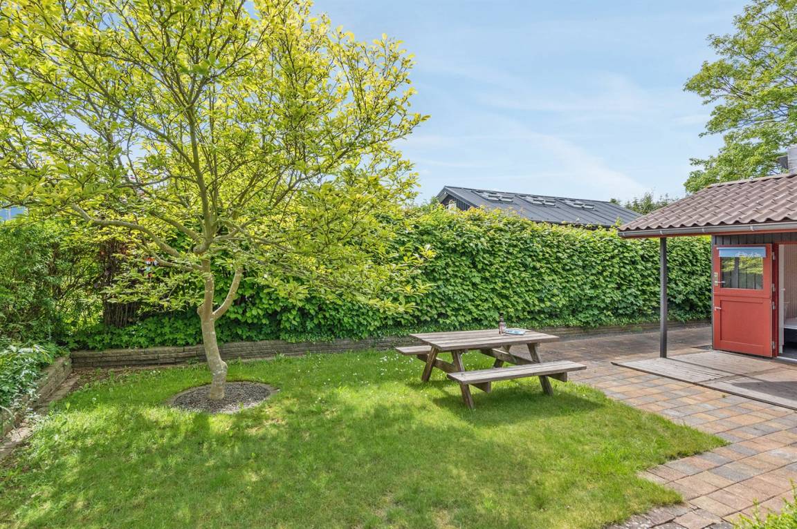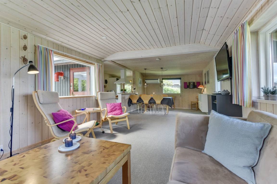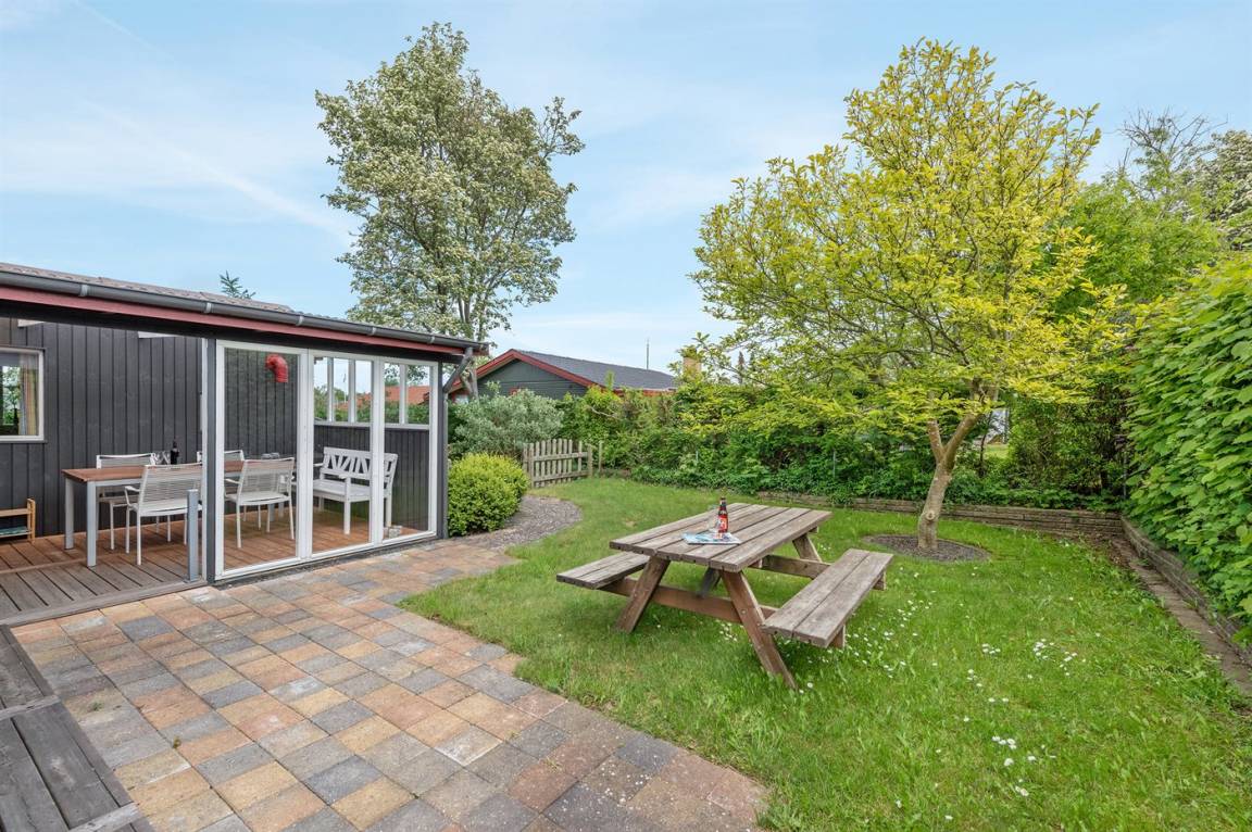 Dieses nette Ferienhaus aus Holz, 1999 renoviert, liegt auf einem teilweise abgeschirmten Gartengrundstück - nur ca. 50 m von einem Spielplatz entfernt. Zum Haus gehören eine offene sowie eine schöne, überdachte Terrasse mit Gartenmöbeln. Die helle Küche liegt im Anschluss an das Wohn-/Esszimmer und ist u. a. mit Geschirrspüler, Mikrowelle, kleines Tiefkühlgerät, Umluftofen und Herd mit Ceran-Feld ausgestattet. Im Wohn-/Esszimmer finden Sie TV mit digitalem Satellitenanschluss, DVD-Spieler und Stereoanlage mit CD-Spieler. Die Schlafplätze verteilen sich auf 1 Zimmer mit Doppelbett, 1 Zimmer mit Etagenbett sowie 2 Schlafplätze (Einzelbetten) im Gästehaus. Für die jüngsten Feriengäste stehen Kinderbett und Kinderhochstuhl zur Verfügung. Es ist eine energiegerechte Wärmepumpe installiert. Ein nettes Ferienhaus in einem kinderfreundlichen Gebiet mit gutem Badestrand.