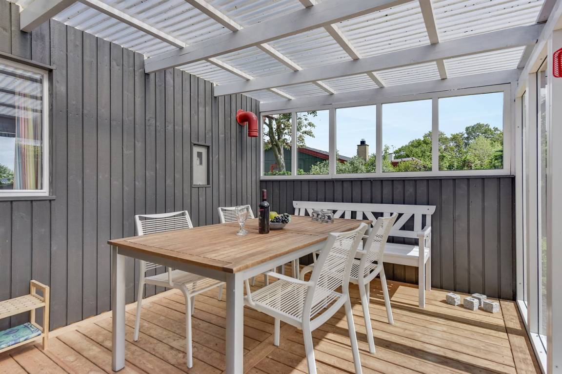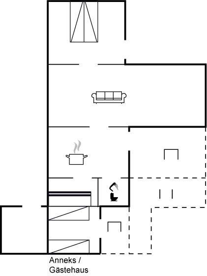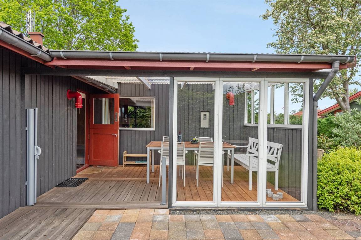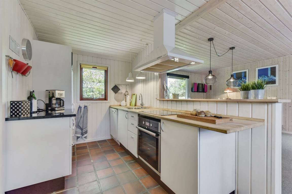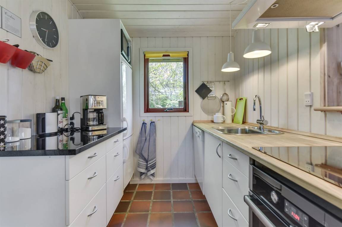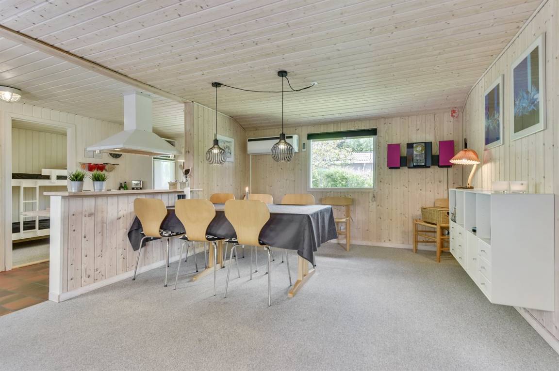 Dieses nette Ferienhaus aus Holz, 1999 renoviert, liegt auf einem teilweise abgeschirmten Gartengrundstück - nur ca. 50 m von einem Spielplatz entfernt. Zum Haus gehören eine offene sowie eine schöne, überdachte Terrasse mit Gartenmöbeln. Die helle Küche liegt im Anschluss an das Wohn-/Esszimmer und ist u. a. mit Geschirrspüler, Mikrowelle, kleines Tiefkühlgerät, Umluftofen und Herd mit Ceran-Feld ausgestattet. Im Wohn-/Esszimmer finden Sie TV mit digitalem Satellitenanschluss, DVD-Spieler und Stereoanlage mit CD-Spieler. Die Schlafplätze verteilen sich auf 1 Zimmer mit Doppelbett, 1 Zimmer mit Etagenbett sowie 2 Schlafplätze (Einzelbetten) im Gästehaus. Für die jüngsten Feriengäste stehen Kinderbett und Kinderhochstuhl zur Verfügung. Es ist eine energiegerechte Wärmepumpe installiert. Ein nettes Ferienhaus in einem kinderfreundlichen Gebiet mit gutem Badestrand.