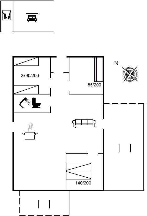 SchlafverhältnisseDie Schlafplätze verteilen sich auf 3 Schlafräume. 2 Schlafplätze in einem Doppelbett. 2 Schlafplätze in Einzelbetten. 2 Schlafplätze in einem Etagenbett. Ferner steht ein Kinderbett zur Verfügung.