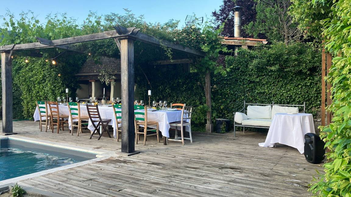 Garten (200 m²): Schwimmbad (privat, Breite: 4m, Länge: 8m, max. Tiefe: 180m, min. Tiefe: 120m, Außen, umzäunt), WiFi Internet, Grill, Kamin, Außenbereich für das Essen im Freien, Esstisch (Personen: 21), Pavillon, Sonnenliege, umzäuntes Grundstück.