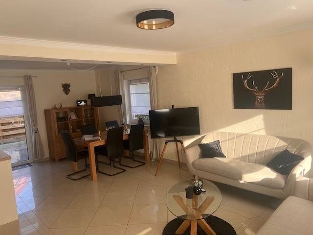 Im Erdgeschoss erwartet Sie eine einladende Wohnküche, die zum gemeinsamen Kochen und Genießen einlädt, ein komfortables Schlafzimmer mit Doppelbett sowie ein stilvolles Badezimmer mit Dusche und WC. Ein praktischer Abstellraum und ein großzügiger Flur mit Zugang zum Obergeschoss runden das Raumkonzept perfekt ab.