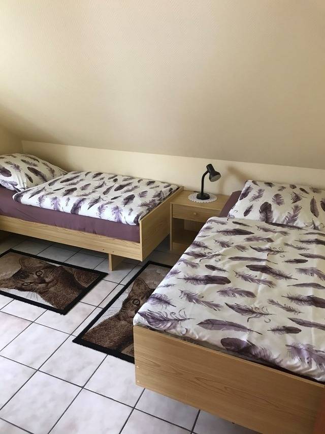 Im Obergeschoss befinden sich ein Doppelzimmer, ein Zweibettzimmer, ein weiteres Einzelzimmer und ein zweites Badezimmer mit Dusche und WC – ideal für Familien oder kleine Gruppen.