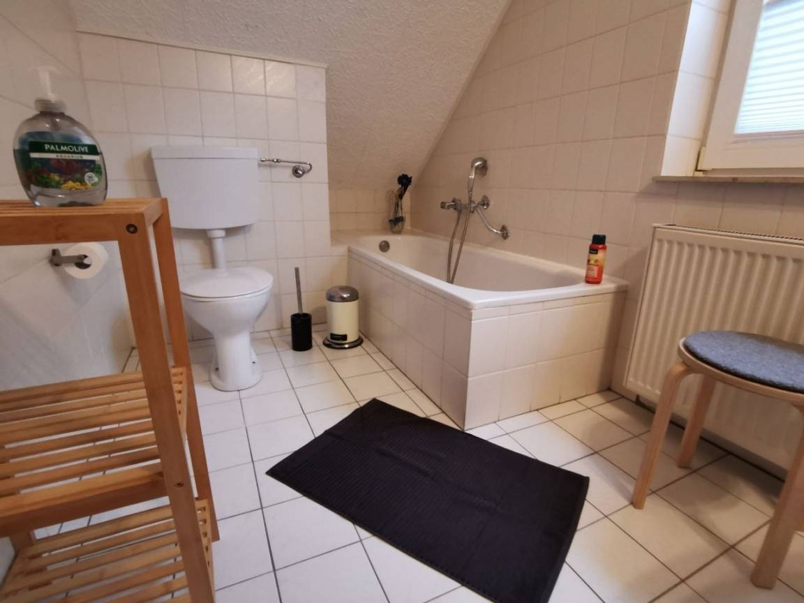 Das Badezimmer ist mit einer Badewanne ausgestattet. Das kleinere der beiden Schlafzimmer ist ein romantisch eingerichtetes Zimmer mit Rosentapete, Samtvorhang, französischem Bett und Möbeln im Shabby-Chic-Style. Der nostalgisch anmutende Schreibtisch kann sowohl als Schminktisch als auch als Home-Office-Arbeitsplatz genutzt werden. W-LAN ist im ganzen Haus vorhanden. Hier finden Sie zudem einen hochwertigen Loewe-Fernseher für das Spielen mit der Playstation 4, sowie eine Auswahl an Spielen.