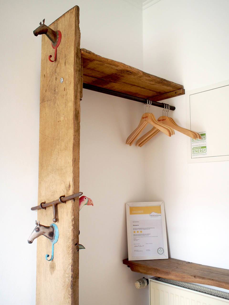 Sie betreten das Haus über den Flur, in dem Sie eine Garderobe und unter der Treppe Stauraum für Ihr Gepäck vorfinden.