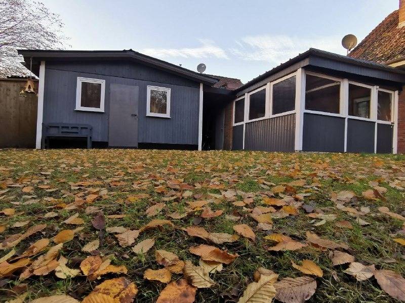 Der Garten ist komplett umzäunt. Eine überdachte Terrasse kann als Außen-Esszimmer genutzt werden, ein massiver Holztisch und 6 Stühle stehen dafür bereit. Hier lassen sich lange Grill-Abende verbringen, Sie können Brettspiele oder mit dem elektronischen Dartbrett spielen. Durch ein Tor im Gartenzaun gehen sie nur wenige Schritte zum neu angelegten Kletterwald. Auch das Schloss ist durch den Wald fußläufig erreichbar. Im Durchgangsraum zur Straße stehen drei Fahrräder für kurze Ausflüge zum Supermarkt oder zur Eisdiele (es sind sogar vier, doch wir schließen nicht aus, dass eines mal platt sein könnte).