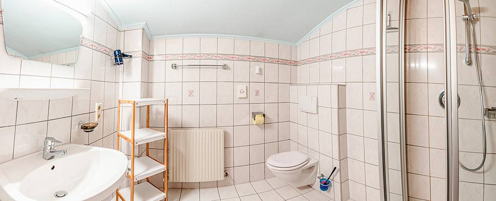 A 150.35 Wohnung 1-4 Pers.: 2 ?-Zimmerwohnung mit 50 qm Wohnfläche, 2. Etage. Wohnküche mit Esstisch, gut ausgestatteter Einbauküche (Backofen, Mikrowelle, Spülmaschine). Wohn-/Schlafraum mit Couch, Sat-TV, Ausziehbett (2 Pers.), Balkon. Doppelzimmer. Bad: Du, Wb, WC.