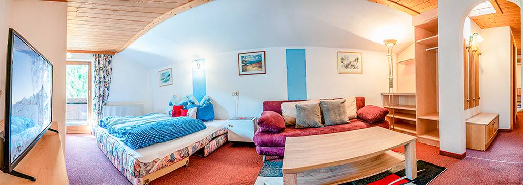 Haus: Ferienhaus mit 3 Ferienwohnungen, alle mit Balkon und Sat-TV. Ski-/Schuhraum mit Schuhtrockner. Kostenloser Internetzugang über W-Lan. Zentralheizung. Vermieterwohnung im Parterre. Die Zimmerlautstärke ist ab 22 Uhr einzuhalten. 1 Pkw-Stellplatz pro Fewo am Haus.