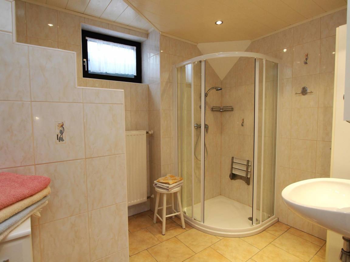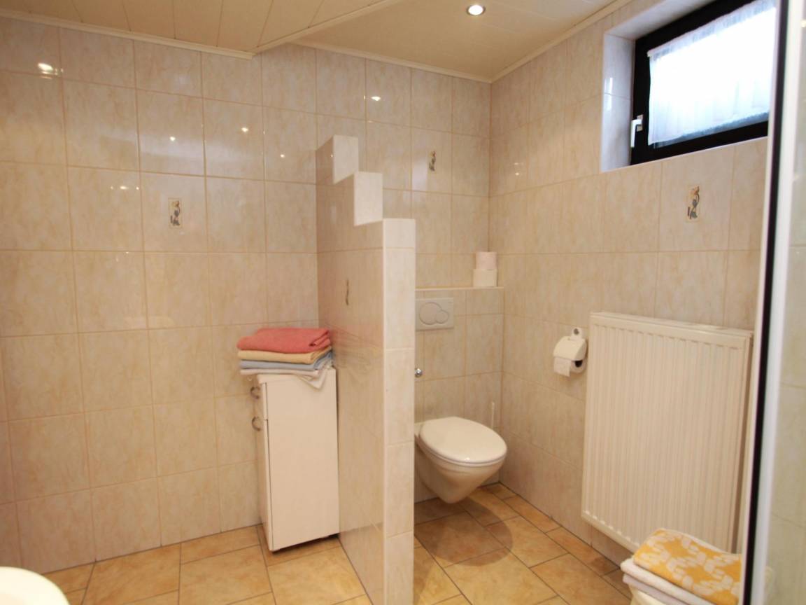 Layout : Parterre: Wohnzimmer mit Schlafcouch 1 Pers., TV , Küche mit Esstisch(4 Personen), Wasserkocher, Kochherd(4 Kochplatten, Ceranfeld), Kaffeemaschine(Filter), Backofen, Geschirrspüler, Kühlschrank , Schlafzimmer mit Doppelbett , Badezimmer mit Dusche(ebenerdige Dusche), Waschbecken, Toilette , Badezimmer mit Dusche, Waschbecken, Toilette