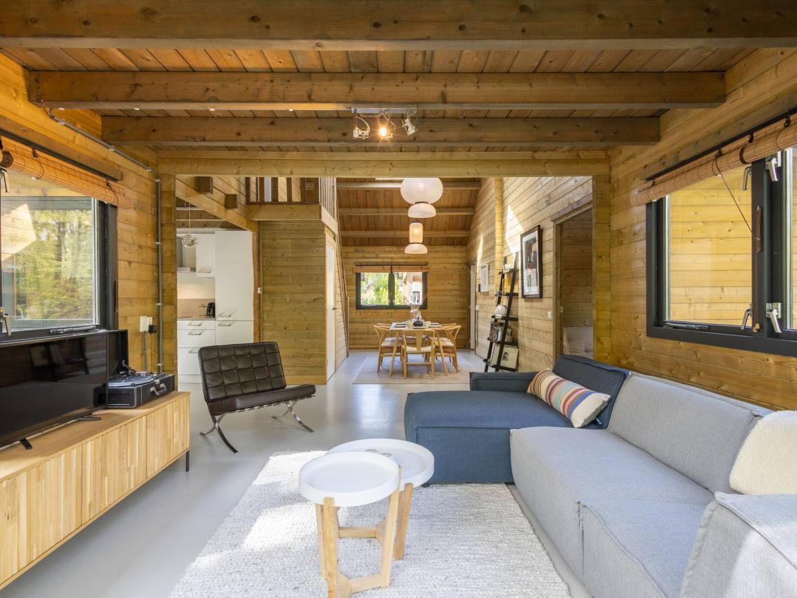 Hausbeschreibung : Schönes, geschmackvoll eingerichtetes Haus am Rande des Waldes. Dieses Anwesen verspricht ein gemütliches Erlebnis inmitten der Ruhe und Schönheit der Natur. Die hölzerne Ausstattung und die künstlerische Dekoration schaffen ein gemütliches und entspannendes Ambiente. Eine gemütliche Sitzecke lädt zum Entspannen nach einem erlebnisreichen Tag im Wald ein, die Küche ist gut ausgestattet. Der ideale Ort für Familien und Freunde, die einen gemütlichen Urlaub verbringen möchten