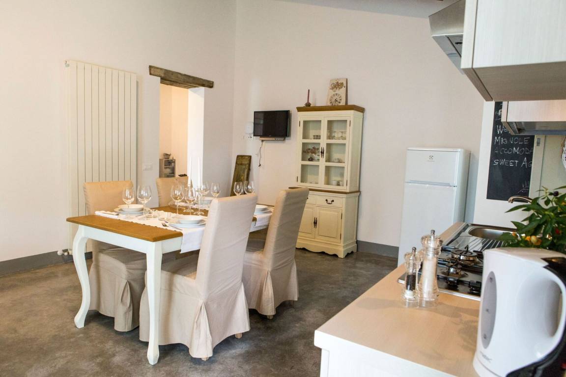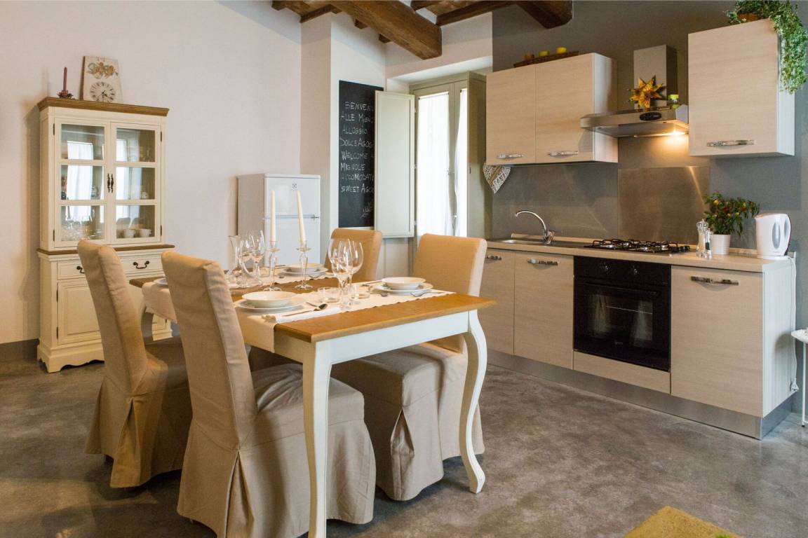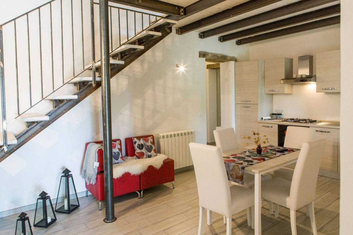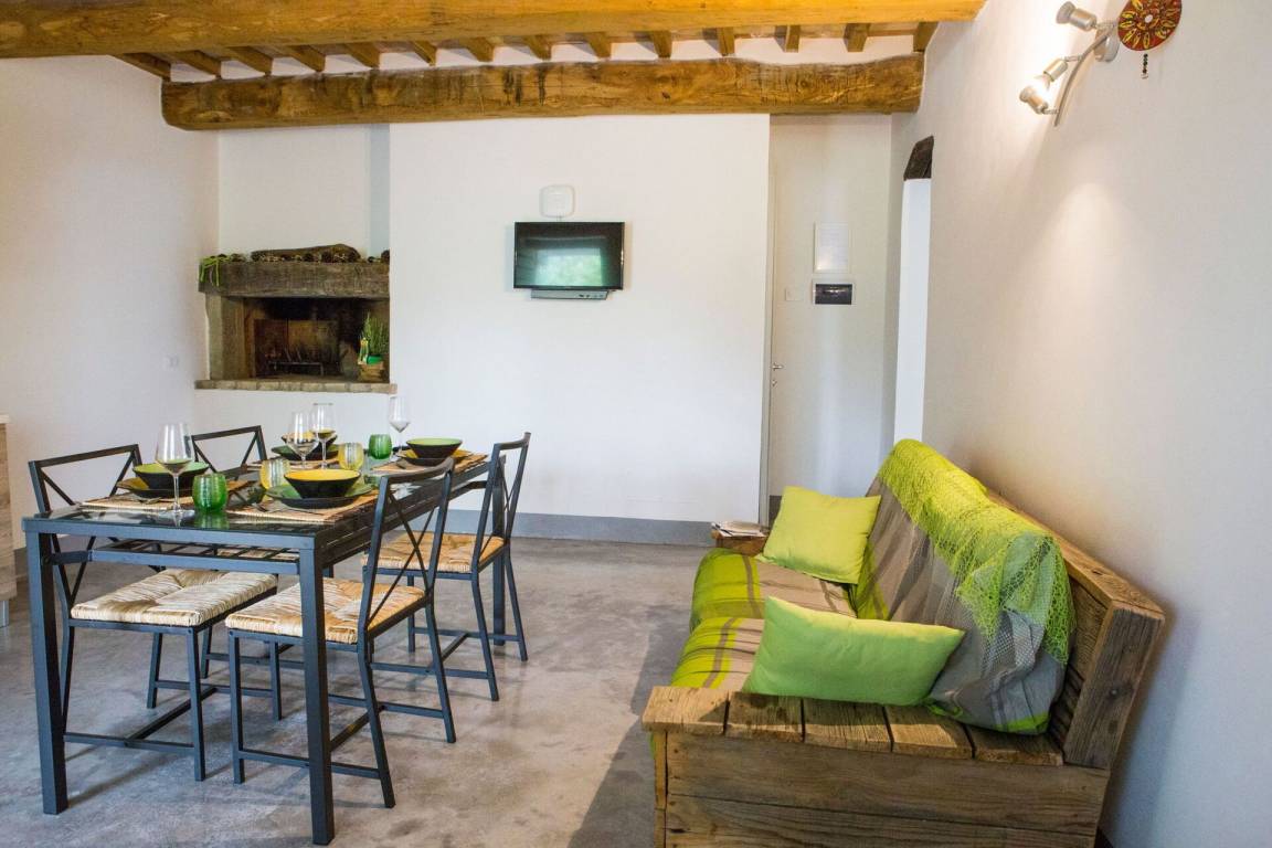 Wohnküche 1: Esstisch (Personen: 4), Spülmaschine, Kühlschrank, Tiefkühler, Herd, Ofen, Toaster, Italienische Kaffeemaschine, Sofa, Kamin, WiFi Internet, TV.