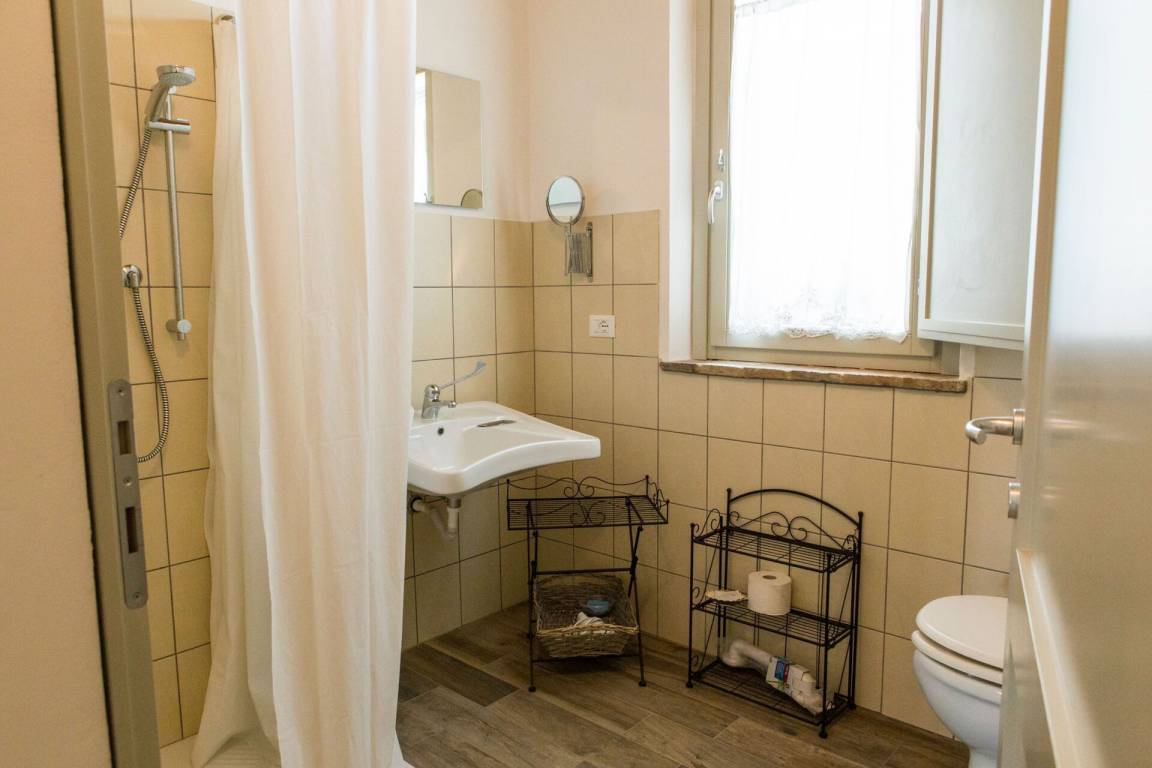 Badezimmer 1: Waschbecken, WC, Bidet, Dusche.