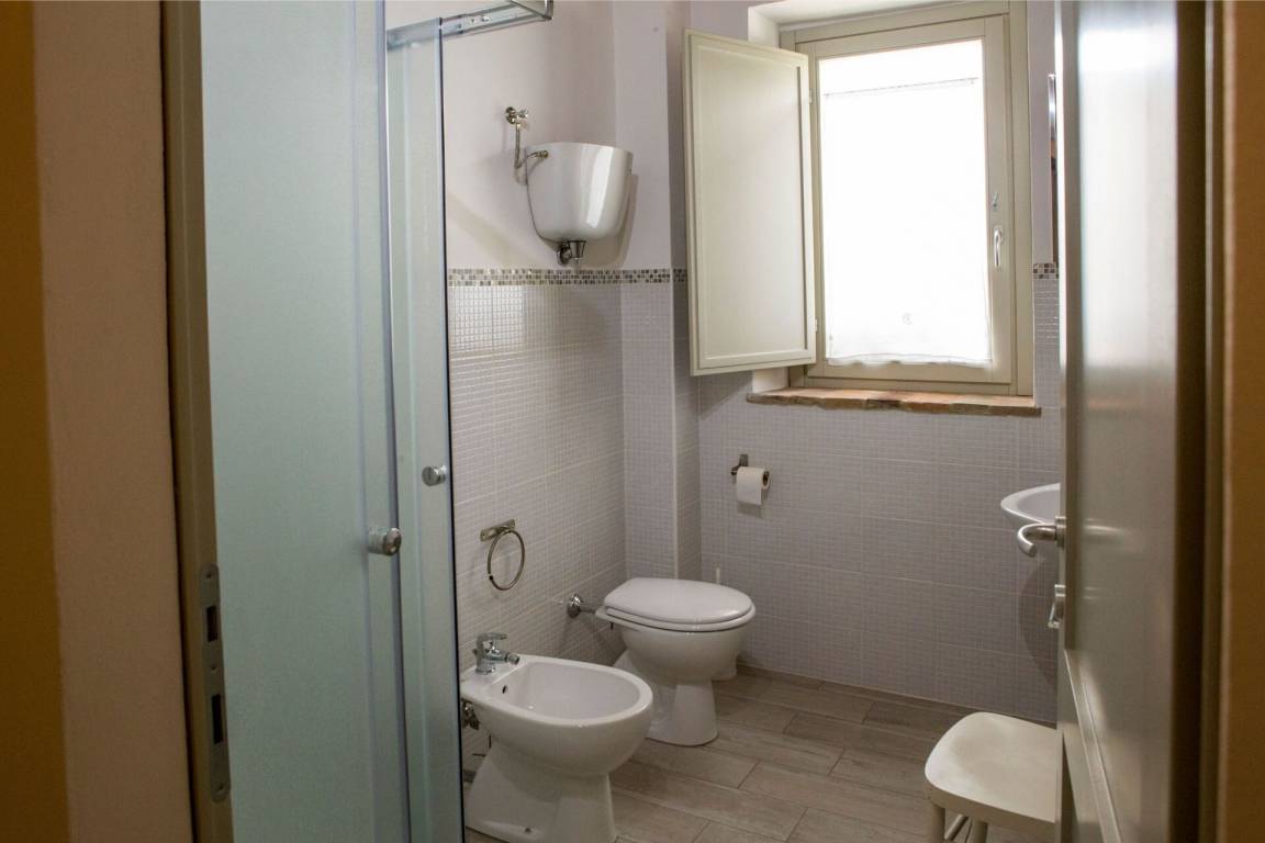 Badezimmer 2: Waschbecken, WC, Bidet, Dusche.