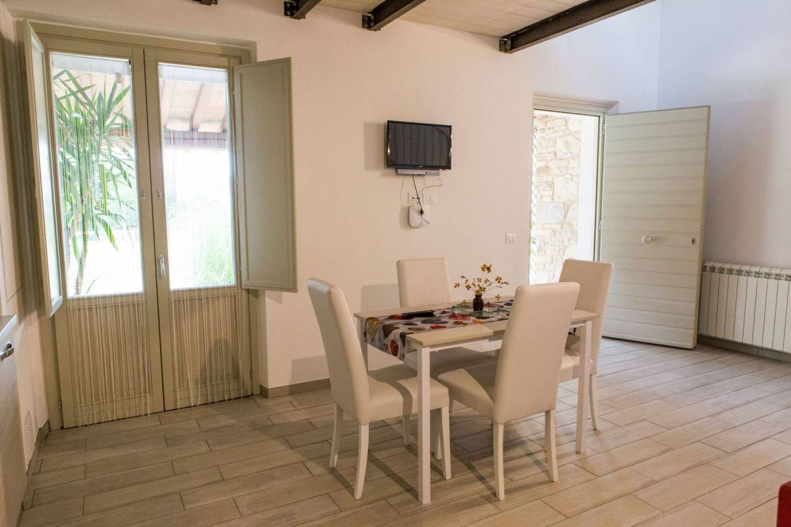 Wohnküche: Esstisch (Personen: 4), Spülmaschine, Kühlschrank, Tiefkühler, Herd, Ofen, Toaster, Italienische Kaffeemaschine, Doppel-Schlafsofa, WiFi Internet, TV.