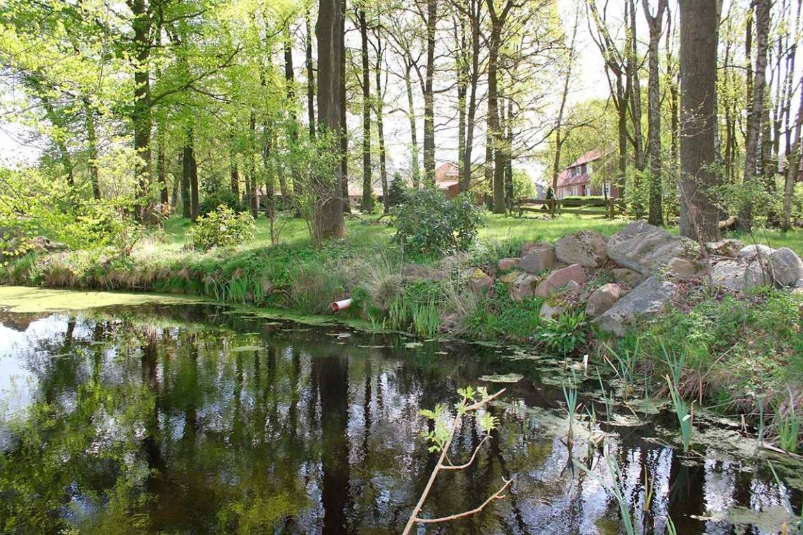 Das großzügige parkähnliche Grundstück bietet viel Raum zum Entspannen. Bei einem kleinen Spaziergang durch den Naturgarten mit großem Baumbestand können Sie die Seele baumeln lassen. Suchen Sie sich ein gemütliches Sitzplätzchen im Grünen oder genießen Sie fröhliche Stunden am Lagerfeuer.