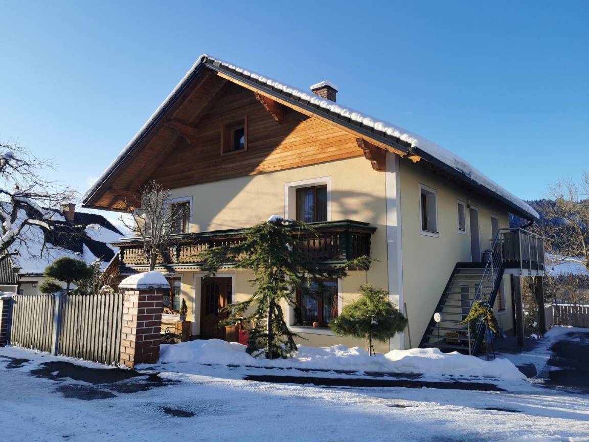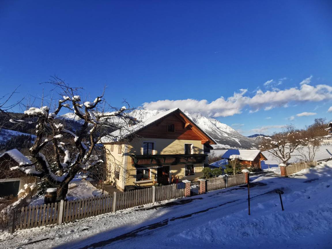 Hausbeschreibung : Genießen Sie einen herrlichen Aufenthalt in dieser schönen Wohnung nur 20 Minuten vom Skigebiet Schladming entfernt, im Herzen des Naturparks Sölktäler. Diese gemütliche österreichische Unterkunft befindet sich im ersten Stock und verfügt über einen eigenen Eingang, eine geräumige Wohnküche mit modernen Geräten, ein großes Schlafzimmer und ein Wohn-/Schlafzimmer mit Schlafcouch, ideal für 2 Paare. Vom Balkon aus können Sie die atemberaubende Aussicht auf die Berge genießen!