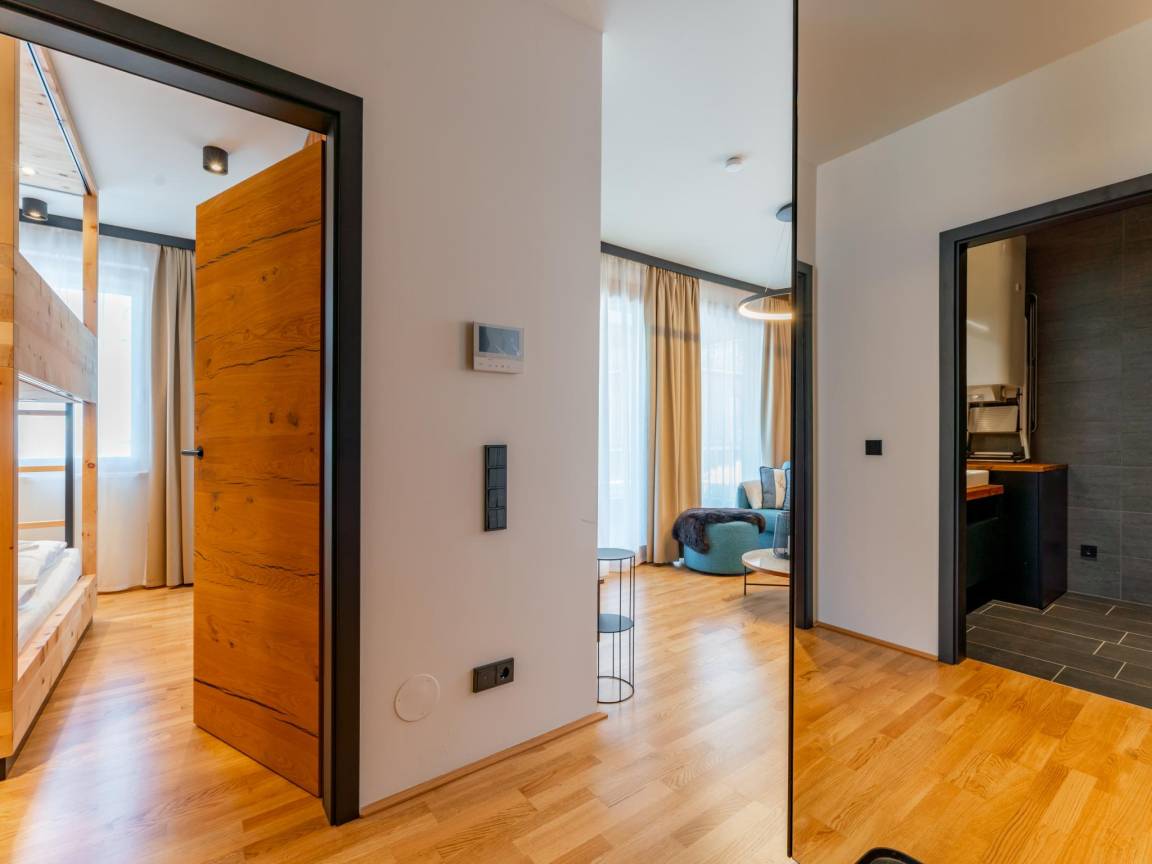 Hausbeschreibung : Diese exklusive Ferienwohnung befindet sich direkt an der Piste mit Ski-In/Ski-Out. Einzigartig sind die Zirbendoppelstockbetten für einen erholsamen und gesunden Schlaf. Für die Wintersportler stehen zwei Skispinde inkl. Trockner für jeweils 5 Paar Schuhe zur Verfügung. Etwas ganz besonderes ist die Sauna direkt im Apartment, die Sie nach einem aktiven Tag auf der Piste jederzeit nützen können. Von der Terrasse aus haben Sie einen herrlichen Blick auf die umliegende Bergwelt