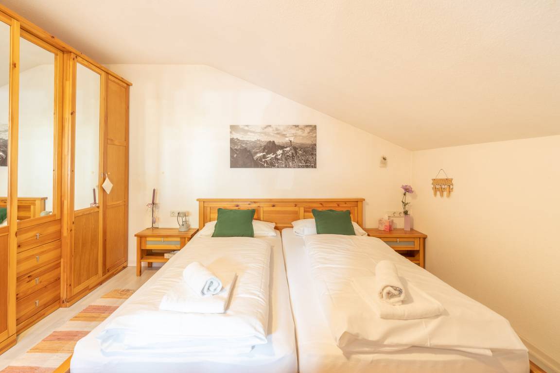 Die großzügige 3-Zimmer-Wohnung für bis zu 4 Personen befindet sich im Dachgeschoss und verfügt über einen Überdachten Balkon.
