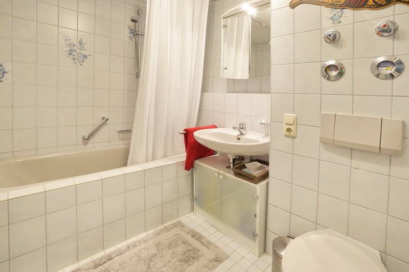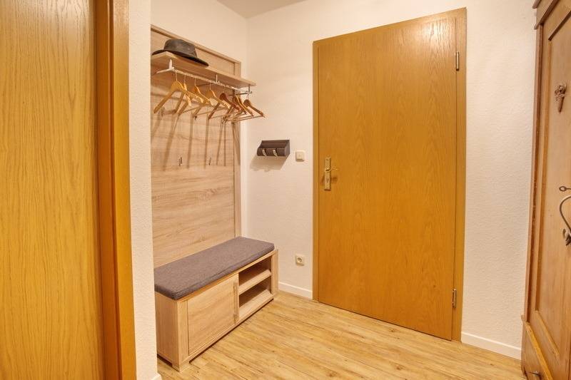 Das Feriendomizil bietet ein Schlafzimmer mit Doppelbett (180x200) und einem großzügigen Kleiderschrank. Das gemütliche Sofa im Wohnbereich lässt sich bei Bedarf als extra Schlafmöglichkeit ausziehen. Zusätzlich bietet Ihnen die Wohnung ein Badezimmer (1x Badezimmer mit Badewanne). Im Keller des Anwesens befindet sich die Waschmaschine sowie der Trockner des Apartments.