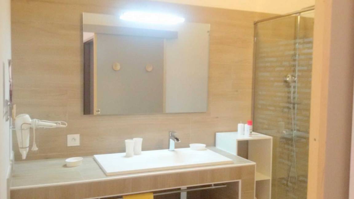 „Les extérieurs sont décevants. Une terrasse est entourée de mur qui ne permet pas d'avoir de vue et qui n'a pas de protection contre le soleil ou la pluie. De l'autre côté un chantier important en cours pour la construction d'un grand complexe sportif. Pour cette année il peut y avoir des bruits de chantier. Lorsque le complexe sera ouvert il sera indispensable que les Gites de France se renseigne sur les éventuelles nuisances sonores que les allées et venues des joueurs et des spectateurs pourront occasionner“