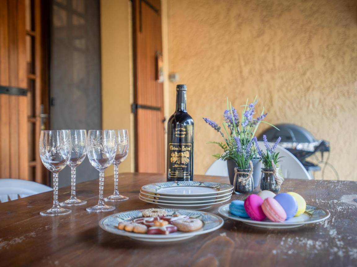 1x Garage(3 Parkplätze) mit Wäschetrockner, Waschmaschine , 1x Garage(1 Parkplatz), Terrasse, Terrasse(überdacht), Garten(alleinige Nutzung, umzäunt, 2000 m²), 8x Liegen, BBQ(Gas), Parasol, Pool(alleinige Nutzung, im Garten, Wasseralarm, 8 x 4 m., Tiefe: 0.6 - 1.4m, geöffnet von Apr bis einschließlich Okt), 1x Kinderbett (ohne Bettwäsche), 1x Hochstuhl