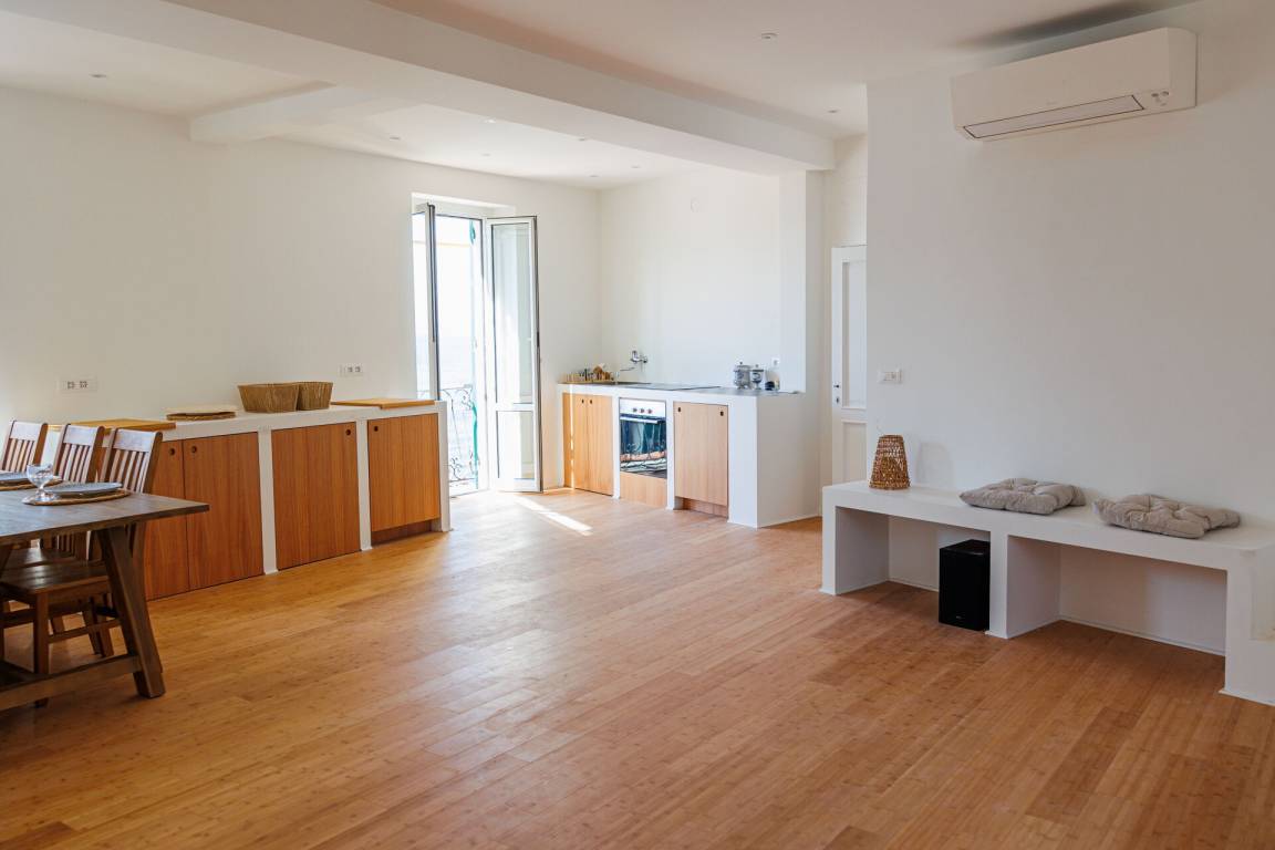 Wohnküche: gut ausgestattete Küche, Esstisch, Spülmaschine, Kühlschrank, Tiefkühler, Herd, Ofen, Italienische Kaffeemaschine, Doppel-Schlafsofa, WiFi Internet, Klimaanlage, TV, Ausgang auf den Balkon.