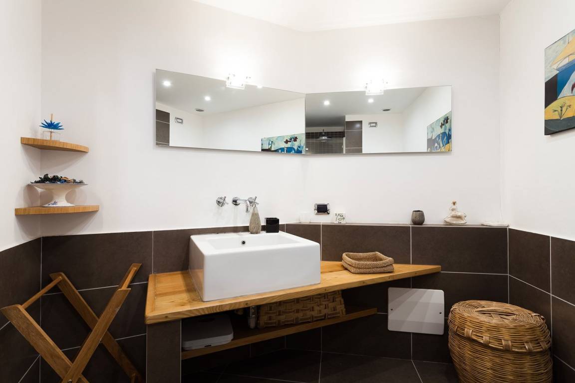Casa Rossella ist eine Ferienwohnung mit einer Gesamtfläche von 2 Geschossen für bis zu 4 Gäste, 2 Schlafzimmer und 2 Bäder. Im Erdgeschoss befinden sich ein Schlafzimmer mit Doppelbett und ein Bad mit Dusche. Im ersten Obergeschoss liegen das zweite Schlafzimmer mit Doppelbett, ein weiteres Bad mit Dusche, die Küche und der Wohnbereich.