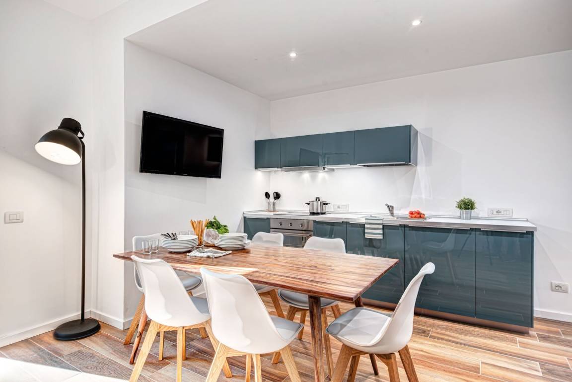 Wohnküche: gut ausgestattete Küche, Esstisch, Spülmaschine, Kühlschrank, Tiefkühler, Herd, Ofen, Toaster, Bügeleisen, Italienische Kaffeemaschine, Waschmaschine, WiFi Internet, Klimaanlage, Satelliten-TV, Ausgang auf den Balkon.