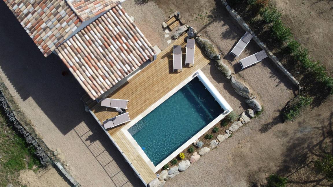- Privater Salzwasserpool 3.5 x 7 m, Tiefe 1.5 m, geöffnet vom 01/03 bis 31/10, beheizt (außerhalb des Zeitraums vom 15/06 bis 15/09), durch einen Rollladen gesichert. Der Pool steht ausschließlich den Mietern zur Verfügung.