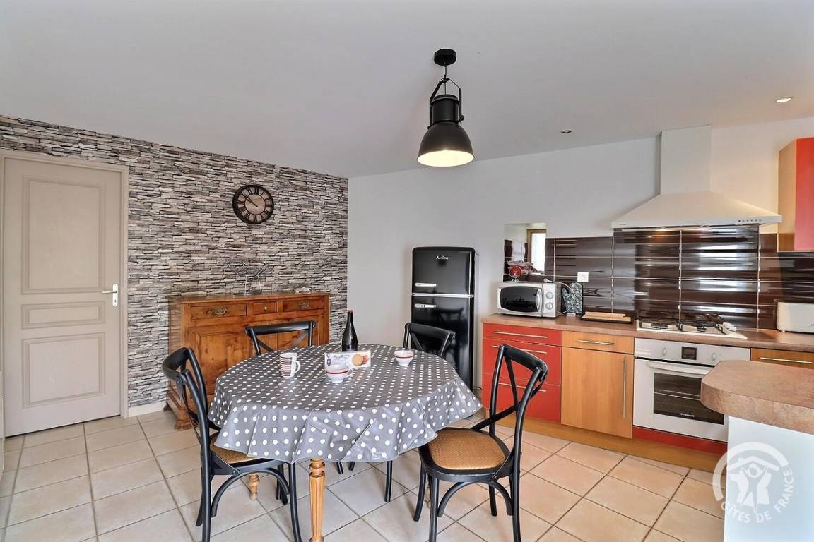 „Gite au calme. maison spacieuse. linge de lit et de toilette fourni ce qui est top. le chauffage a ete mis pour notre arrivée avec une belle flambée. hote sympatique et accueillante. je recommande“