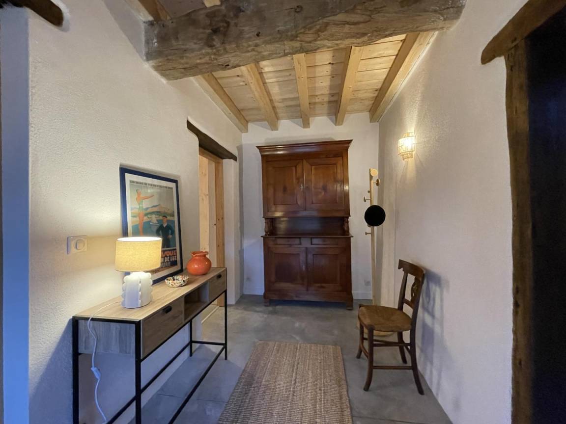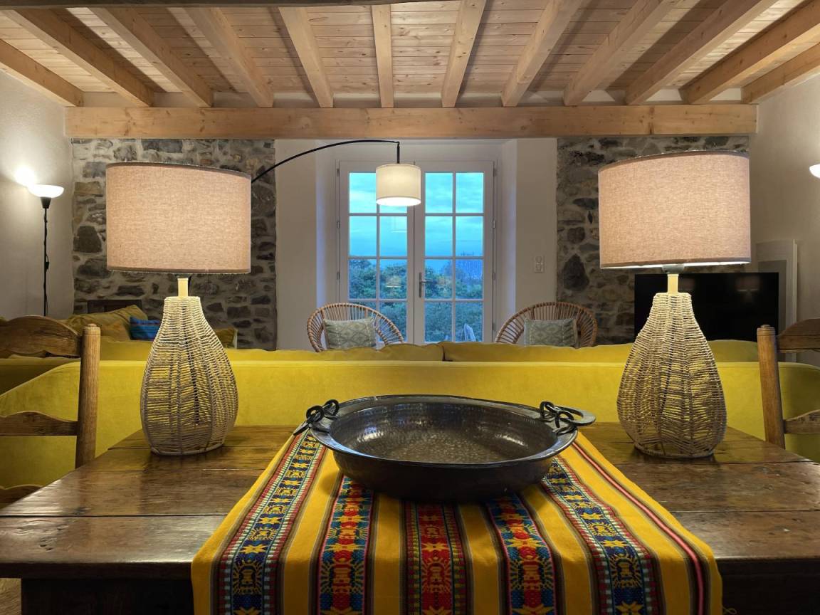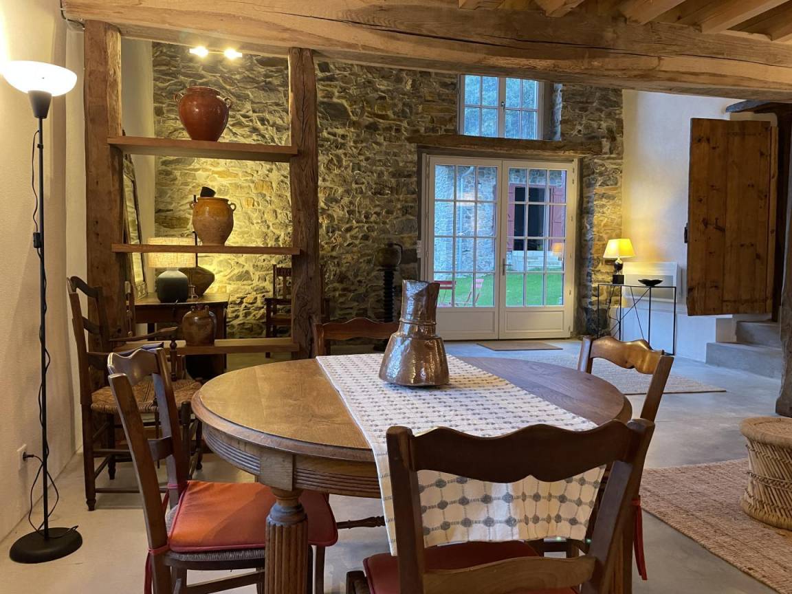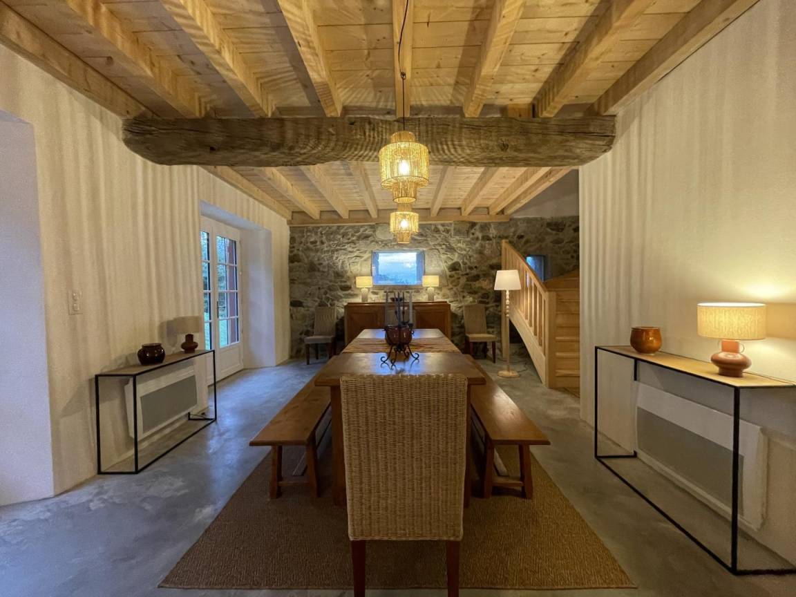 Terrasse mit Gartenmöbeln und Plancha. Restaurierter Holzofen in einem Nebenraum.