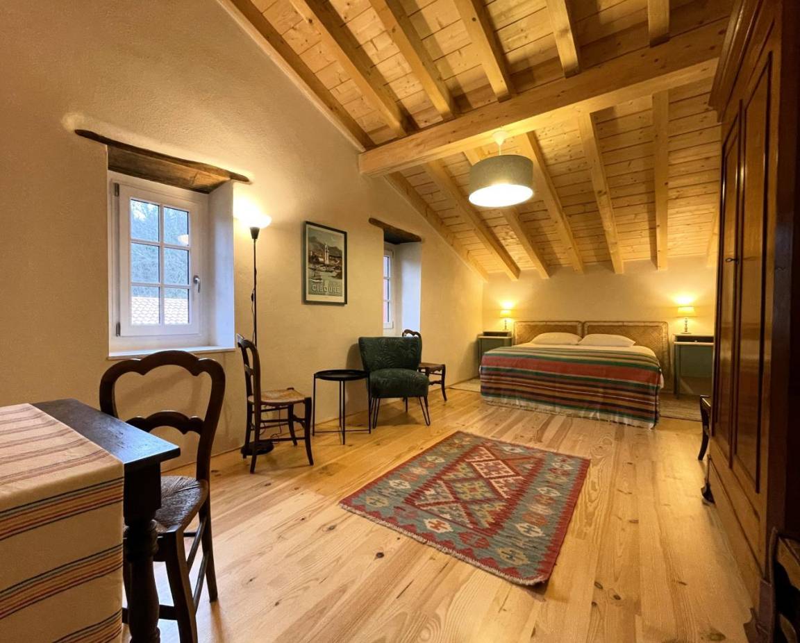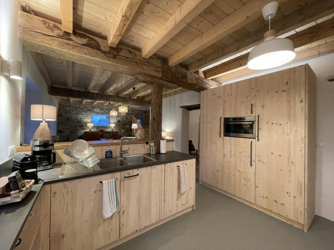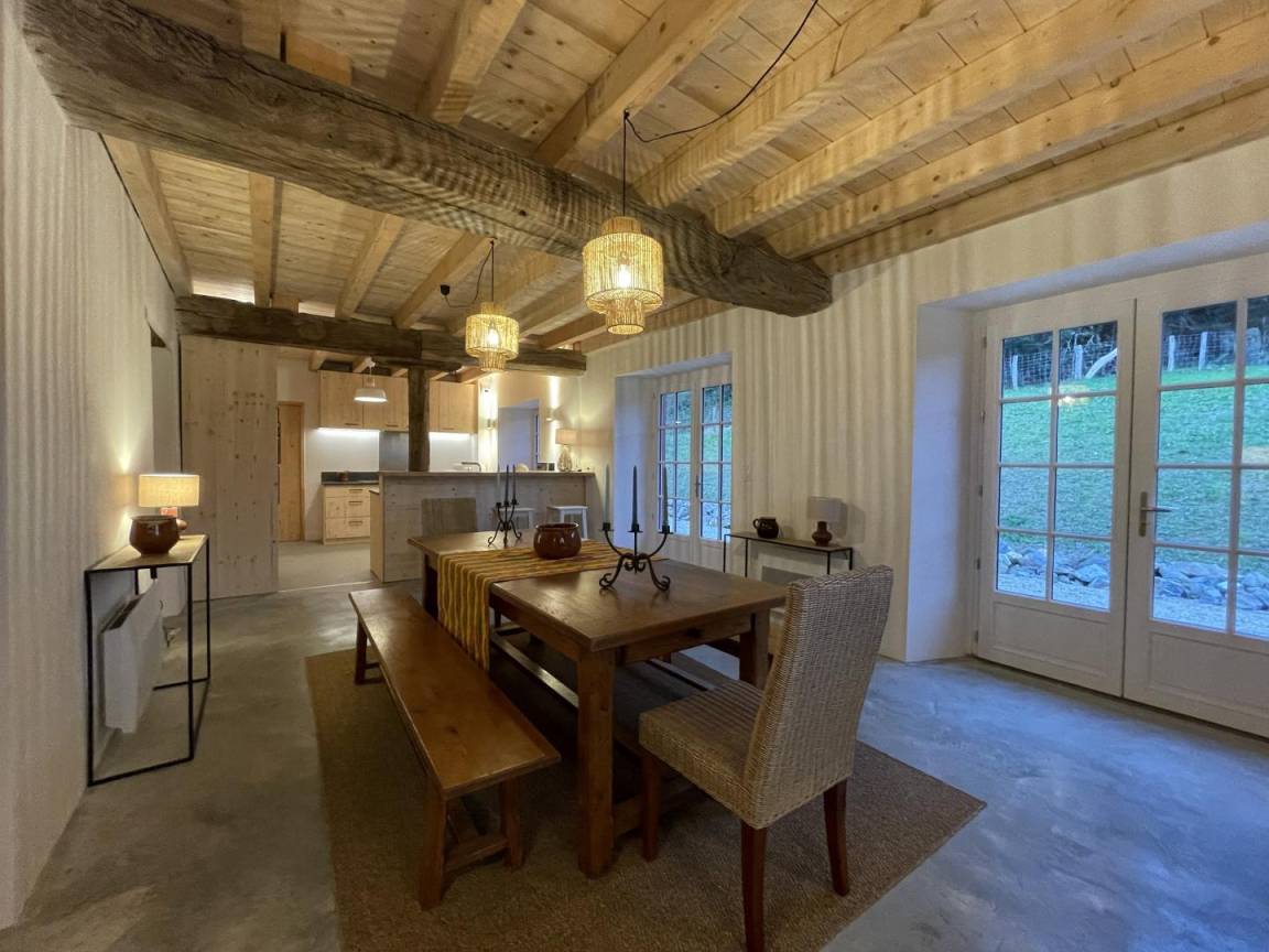 Terrasse mit Gartenmöbeln und Plancha. Restaurierter Holzofen in einem Nebenraum.