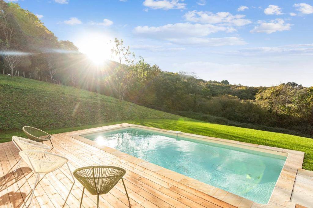 Unbeheiztes Schwimmbad (7x3,5m), alarmgesichert (maximale Tiefe 1,50m). Entspannungslounge. Garten mit Blick auf die Hügel.