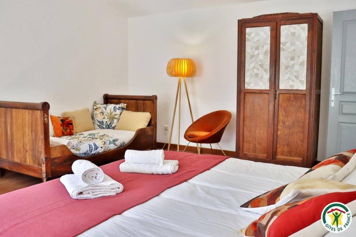 „Bonjour Idéalement situé côté tourisme, art, vtt, ballade Excellent accueil Côté cuisine !Qd on cuisine pour 12.. il manque peut être un bloc plan de travail.., des poêles moins abîmées (j’imagine que certaines personnes ne st pas très respectueuses, une cocotte avec couvercle, un deuxième gros plat, inox qui va au four.. un petit batteur mixer.. une nouvelle éponge ds le petit studioCôté poubelles Une carte détaillées des lieux de dépôts de poubelles et de compost Il n’y avait pas de code wifi ds le petit studio.. pas grave.. mais j’ai vu un câble.. un boîtier..? ?j’ai cherché ds votre panier.. j’ai oubli de vous demander Ce sont des suggestions.. au vu d’autres gîtes que nous avions loués pour la famille !Merci en tt cas pour ce séjour ds une région magnifique Françoise“
