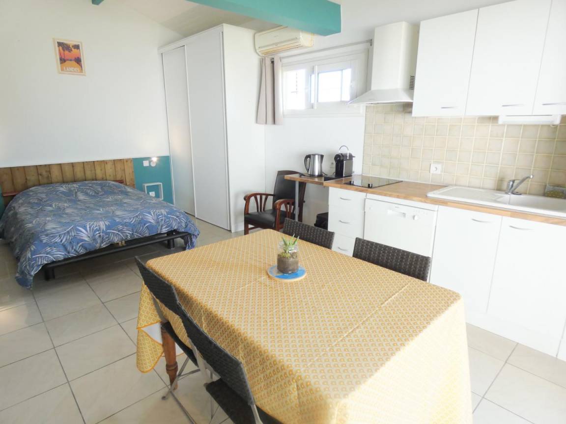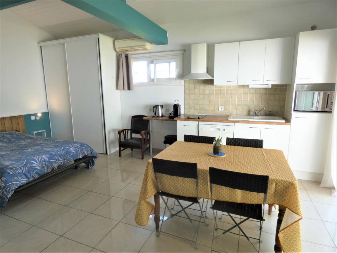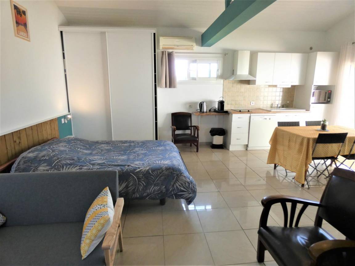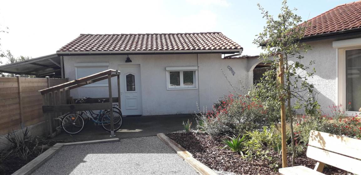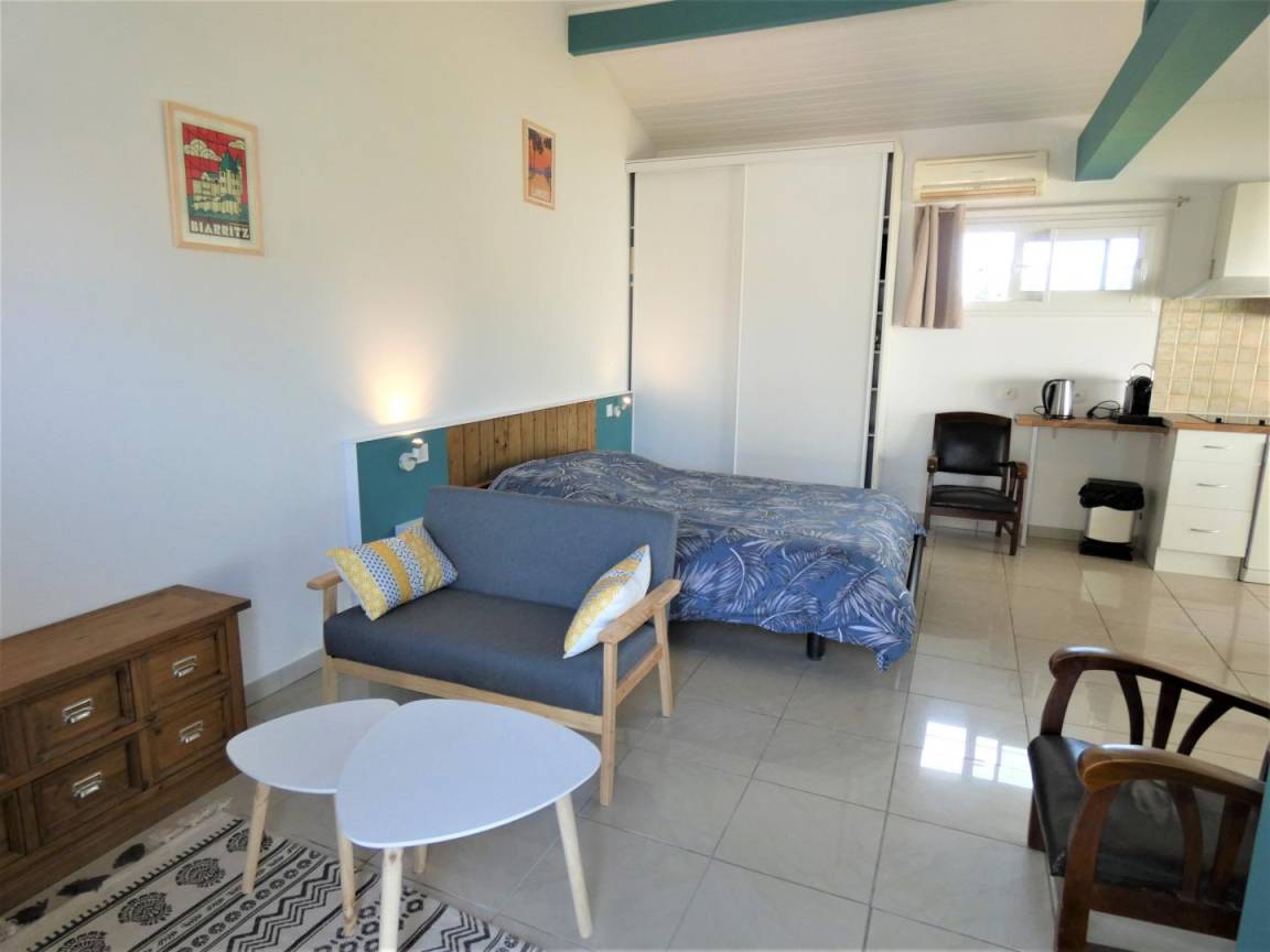 Mit seiner privaten, überdachten Terrasse und dem kleinen Garten bietet dieses klimatisierte, 35 m² große Studio in einer ruhigen Wohngegend Entspannung, Komfort und Erholung zu jeder Jahreszeit.