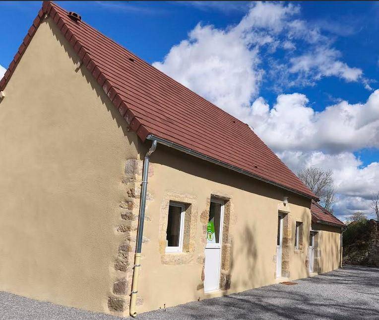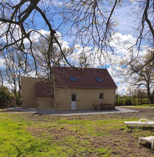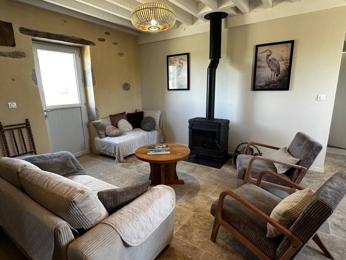 Ein renoviertes Ferienhaus, das mit authentischen Materialien und modernem Komfort ausgestattet ist und einen unverbauten Blick auf die Landschaft des Bourbonnais bietet.