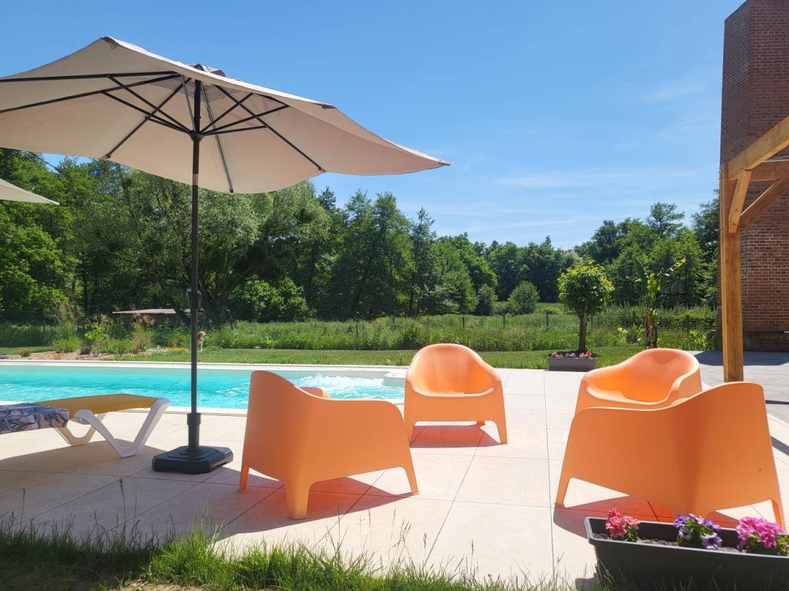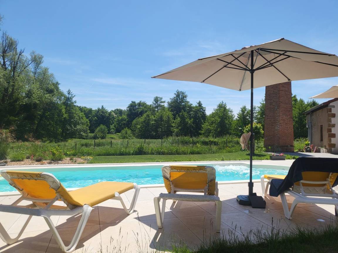 Möglicherweise haben Sie zu Beginn des Sommers die Möglichkeit, das Schwimmbad mit Whirlpool-Sitz (10 x 4 m, 1,50 m tief) zu genießen. Die Arbeiten an der Terrasse rund um den Pool sind im Gange.