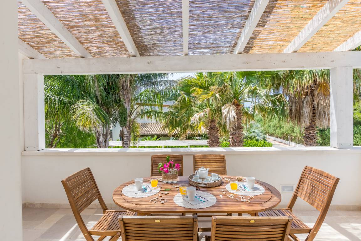 Wohnung zur Miete in Apulien am Lido Specchiolla, Ostuni. Nur 300 Meter von den weißen, freien und ausgestatteten Stränden entfernt. Es liegt an der Via della Pineta, 200 m vom Yachthafen und nur 3000 m von der Oase Torre Guaceto entfernt. Genießen Sie den Gartenblick von allen Schlafzimmern und zwei Veranden mit Gartenmöbeln. Ostuni, die erste Touristenstadt, ist nur 12 km entfernt, der Flughafen Brindisi nur 20 km.
