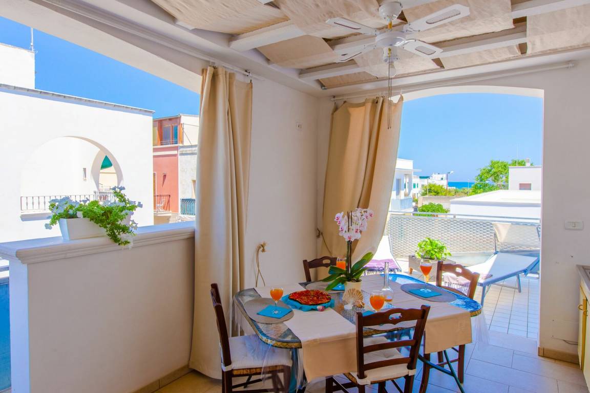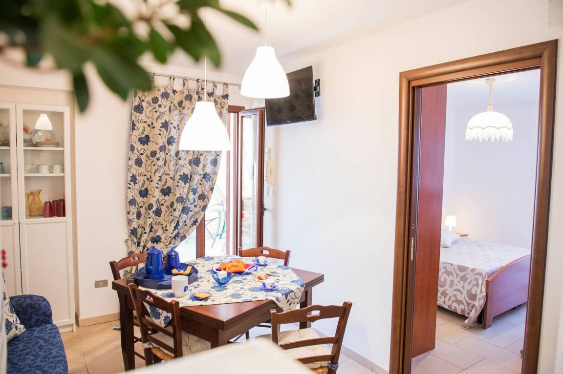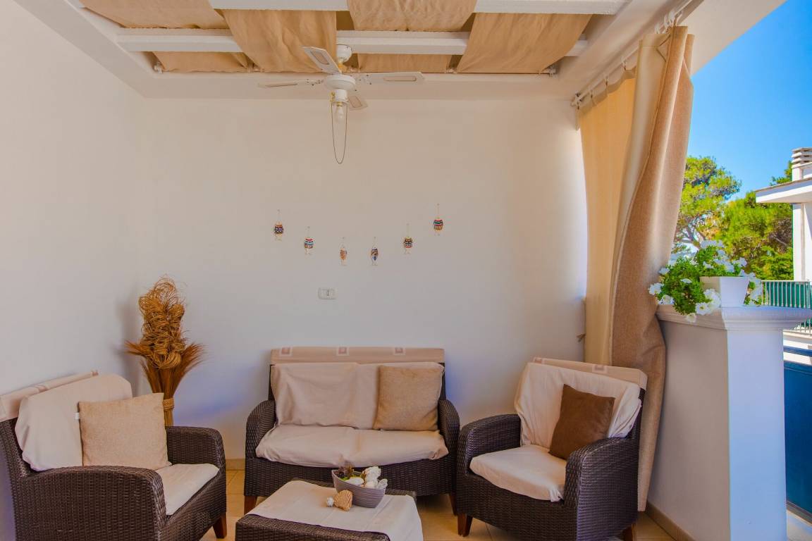 Wohnküche: Esstisch (Personen: 4), Kühlschrank, Tiefkühler, Herd, Ofen, Italienische Kaffeemaschine, Sofa, WiFi Internet, Klimaanlage, Fliegengitter, TV, Ausgang auf den Balkon, Ausgang auf die Terrasse.
