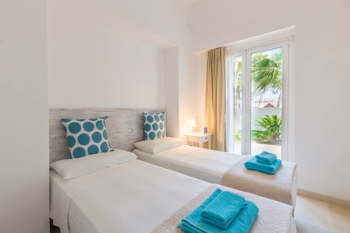 1 klimatisiertes Wohnzimmer mit Kochnische und Schlafsofa, 2 Doppelzimmer, 1 Badezimmer mit Dusche.