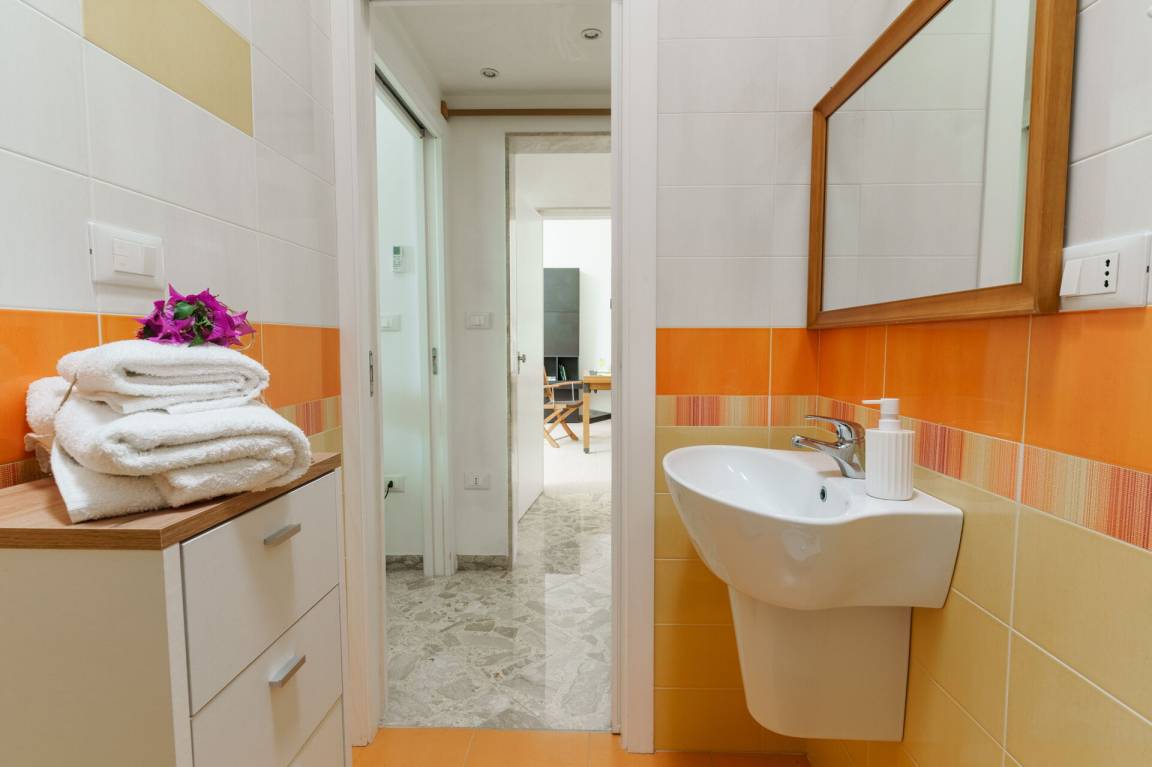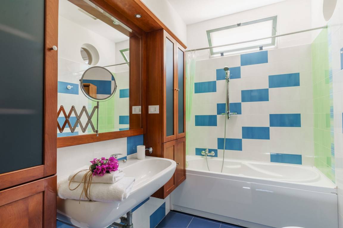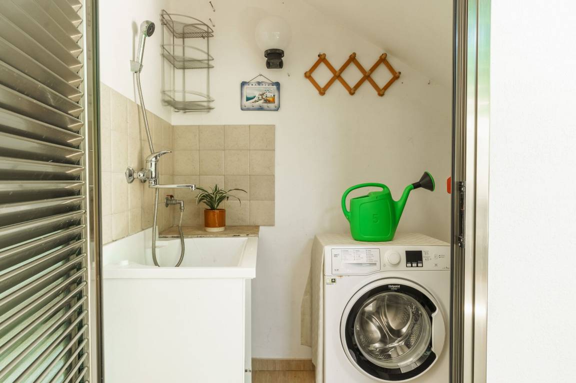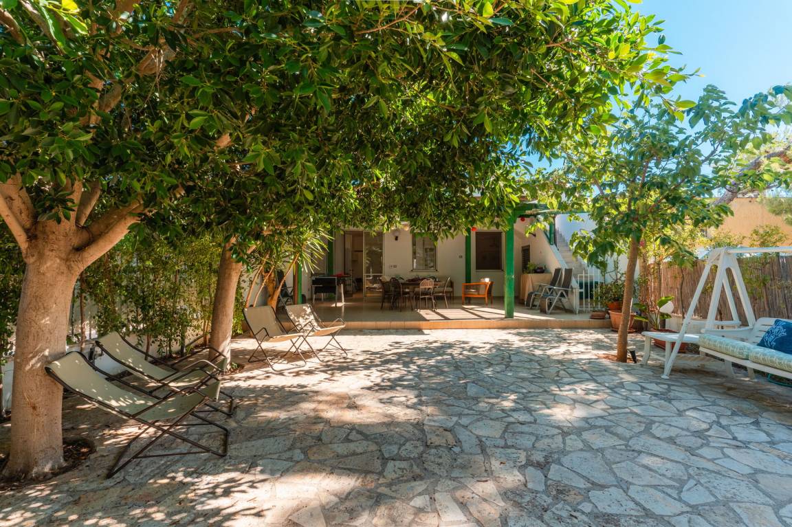 Wohnküche: Esstisch, Spülmaschine, Kühlschrank, Mikrowelle, Herd, Italienische Kaffeemaschine, Sofa, Sofa bed, WiFi Internet, Klimaanlage, Fliegengitter, TV, Ausgang auf den Garten, Ausgang auf den Patio, Ausgang auf die Veranda.